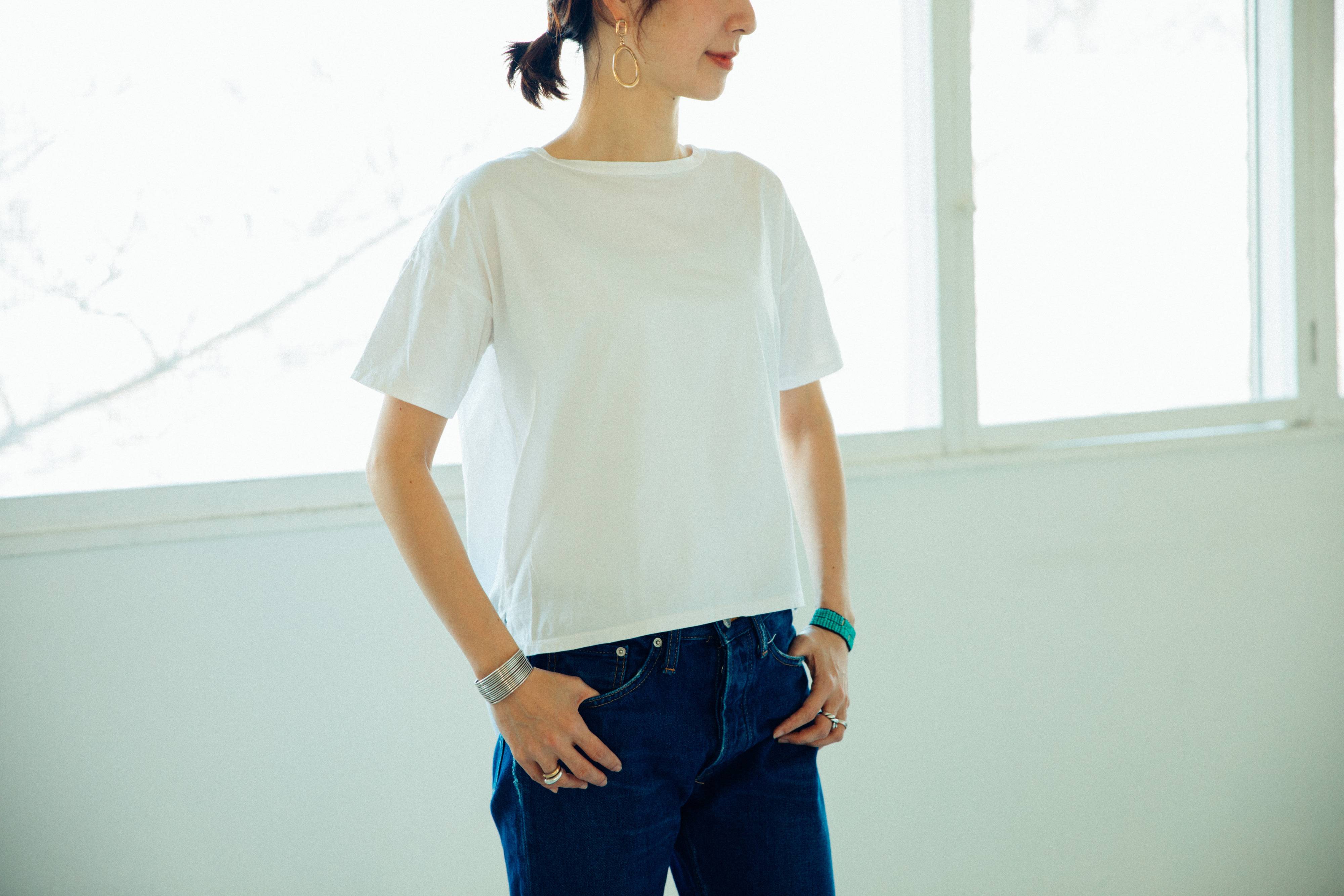 白いTシャツは、こう着こなす。