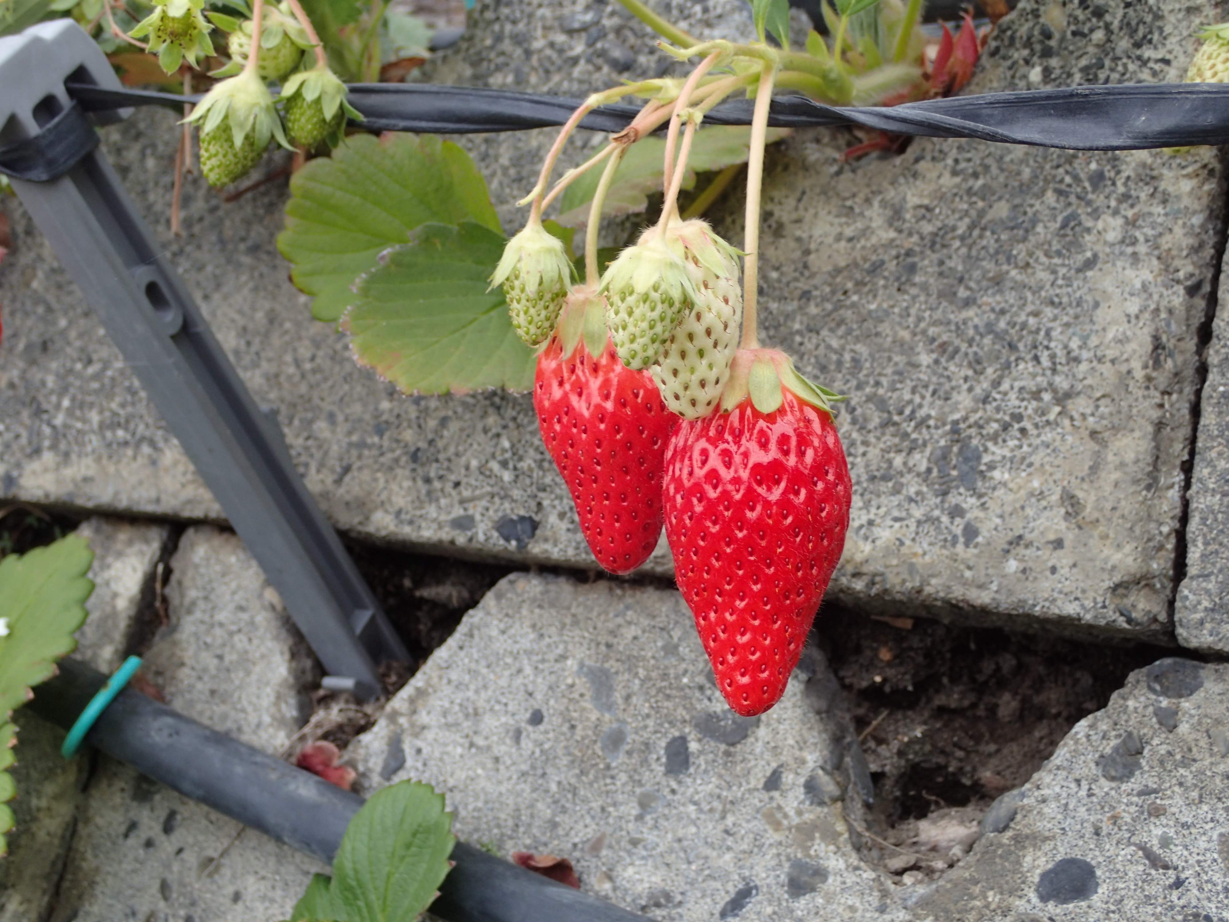 土を使わない高設栽培の場合、立ったまま摘み取りが可能です。足元のいちごをうっかり踏んでしまう心配もないので、小さいお子さんがいるファミリーにおすすめです。