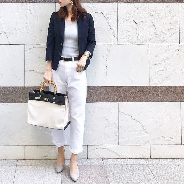 デニムスタイルでスポーティーかつ、カジュアルな雰囲気のあるバッグを合わせると、デニムでのカジュアル感がUPし、あたかもオフィス着に手を抜いたような印象になってしまうので、要注意です。