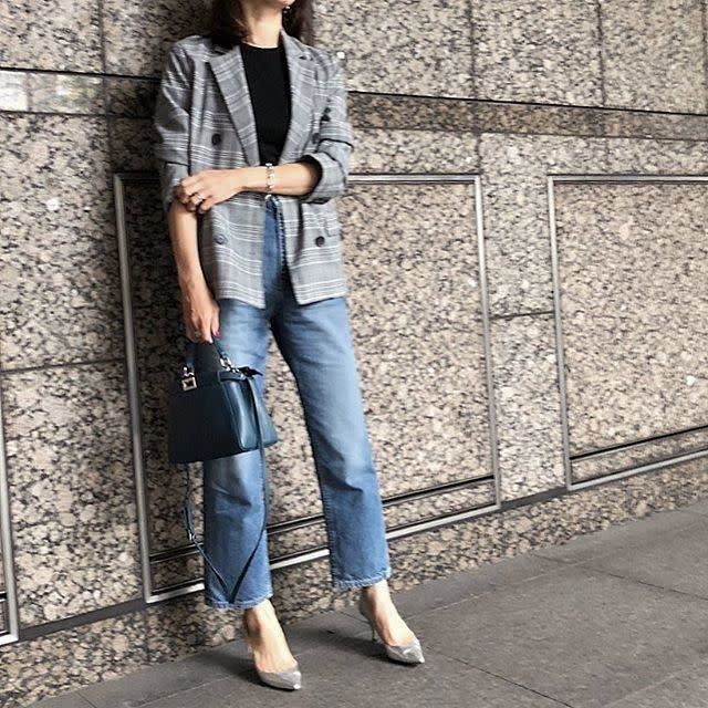 デニムのカラーやシルエットが決まれば、あとは「きちんと感」のあるトップスや小物でオフィスシフトにチェンジ!