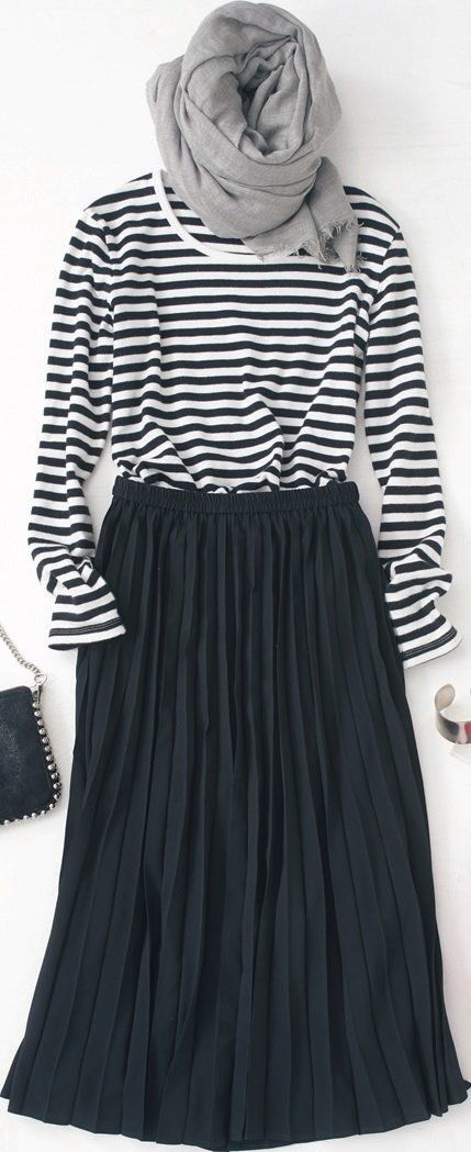 嫌みのないおしゃれ感が欲しいママ会は、プリーツスカートで甘く、小物でメリハリを!