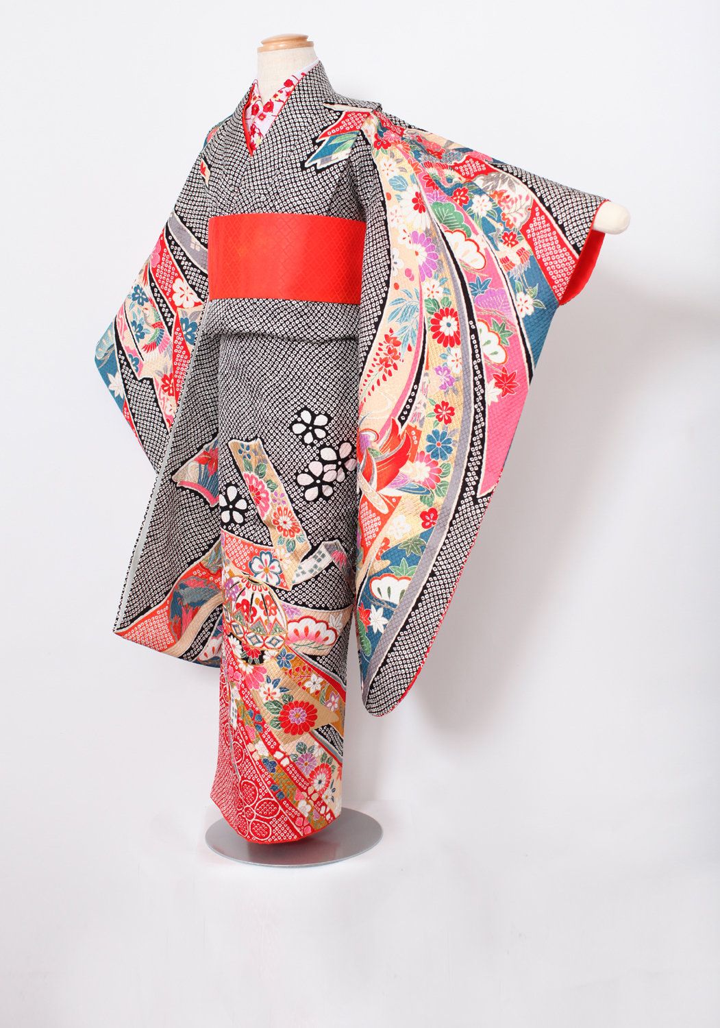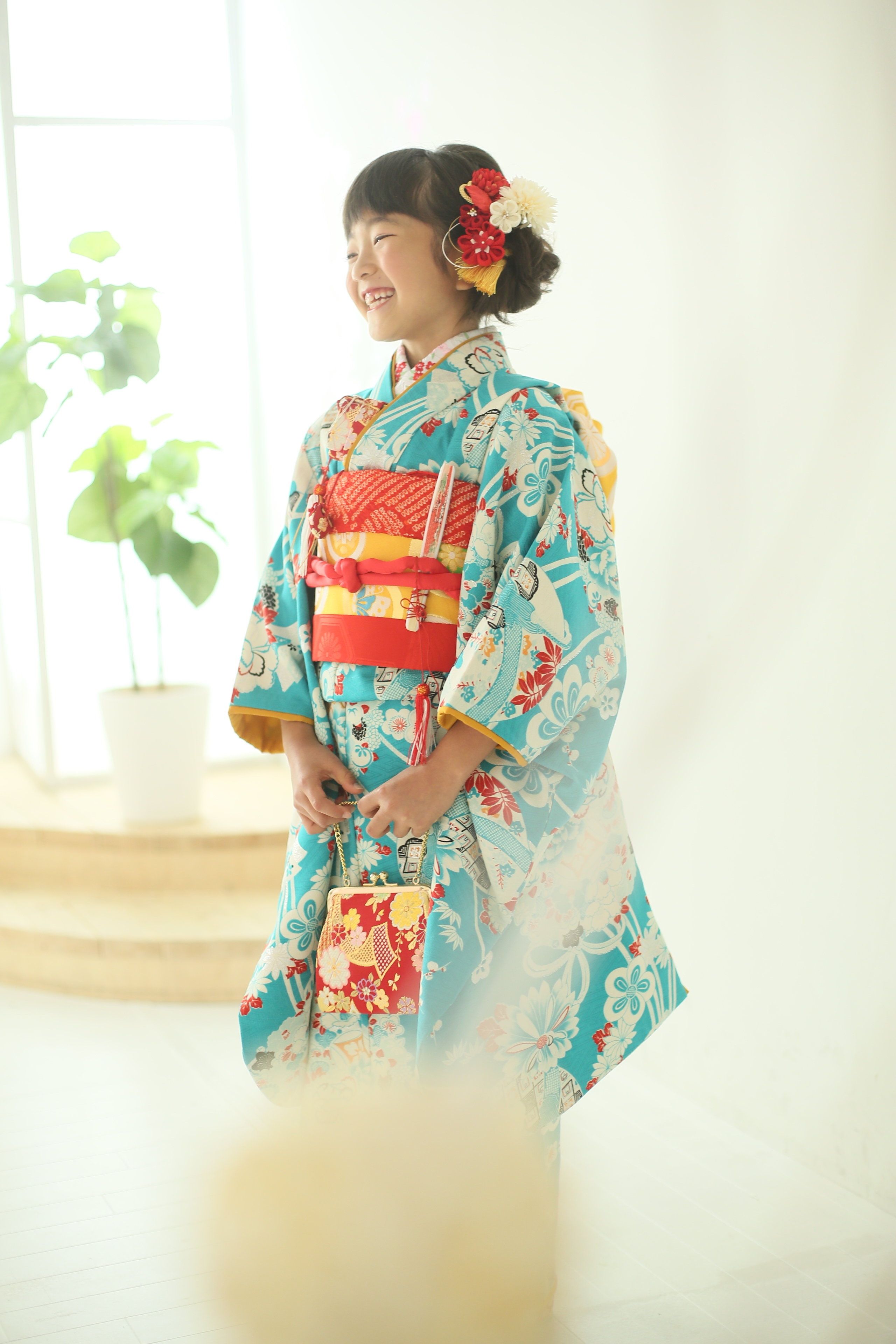 7歳のお祝いでは、少し背伸びをしてお姉さんぽく着物を着こなすのも素敵。特に目鼻立ちがはっきりとした女の子には、成人式の振りそでのようなあでやかな着物もよく似合います。