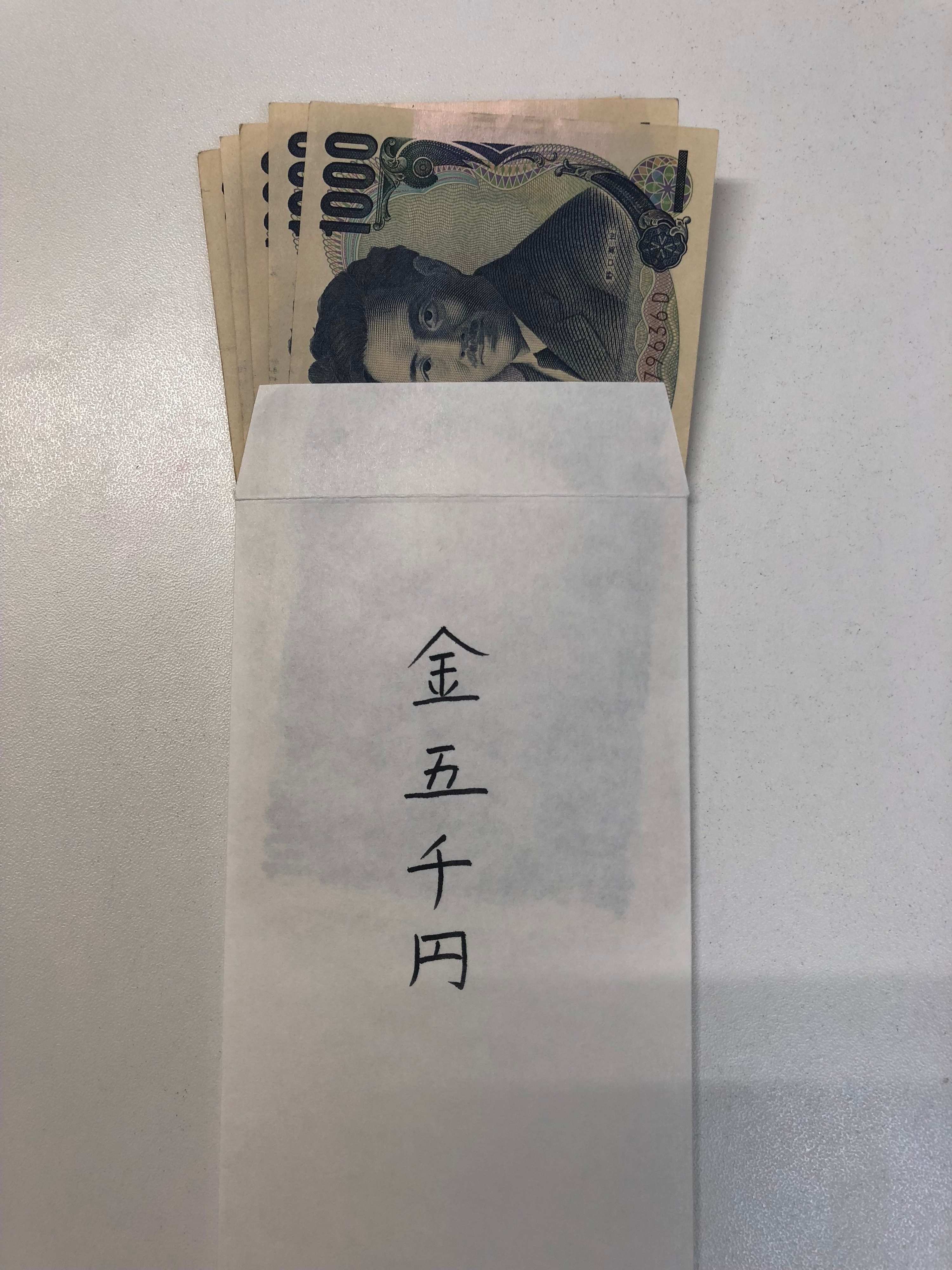 結婚式のご祝儀と同じ入れ方です。お札の人物が印刷されているほうが表、顔は上です。お金は新札でなくてもOKですが、それに近い折り目の少ないきれいなお札をあらかじめ用意しておきます。