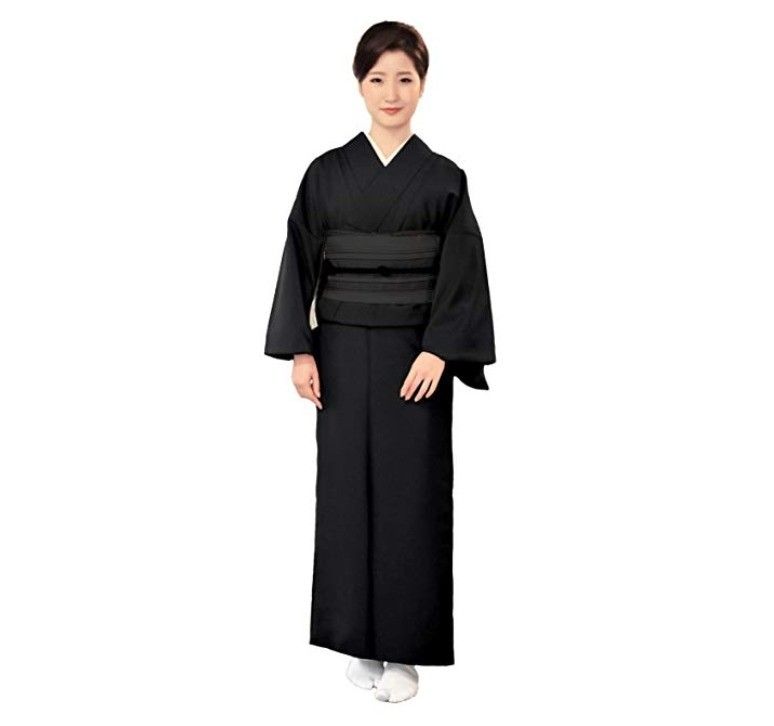 ●和装……染め抜き五つ紋つき黒羽二重か一ノ越ちりめんの着物、帯は黒無地。