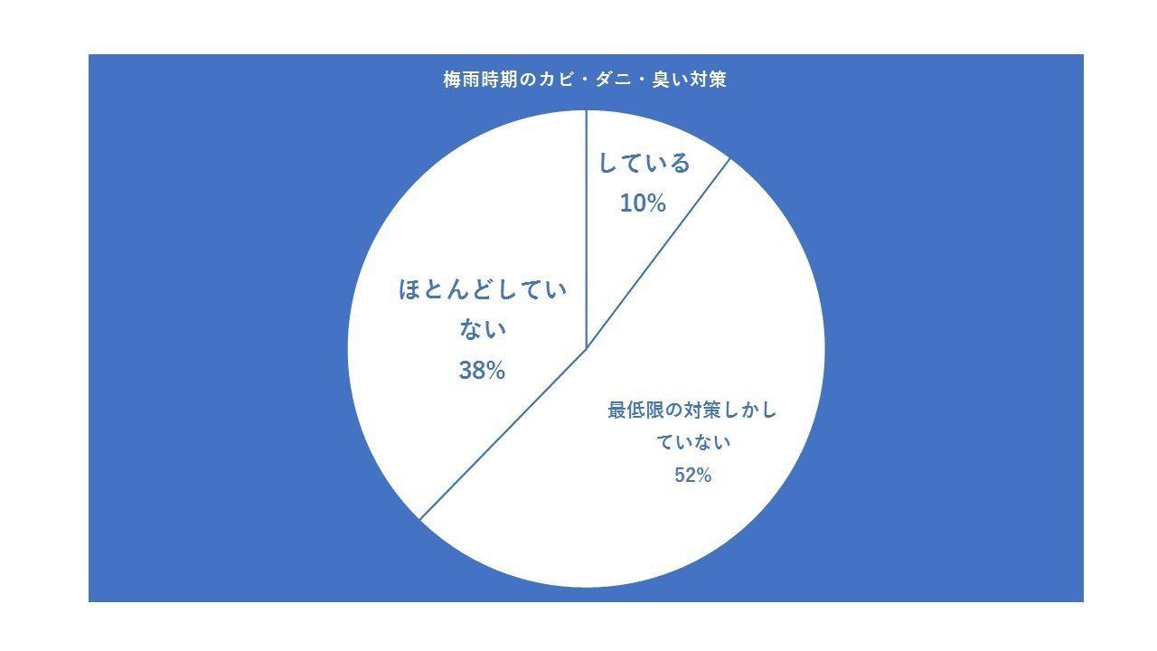 雨の季節に備えてカビ・ダニ・臭い対策をしている人は10.3%。いちばん多かったのは「最低限の対策だけ」という52.0%、「ほとんどしていない」人も37.7%にのぼりました。
