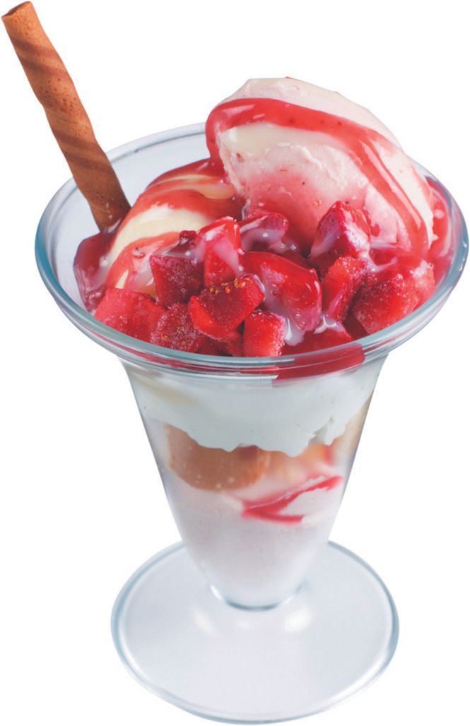 この価格で、バニラとストロベリーの2種類のアイスが入っているのがすてき。フローズンのいちごのシャリっとした食感も楽しめて、食後のパフェとして充分すぎる内容。