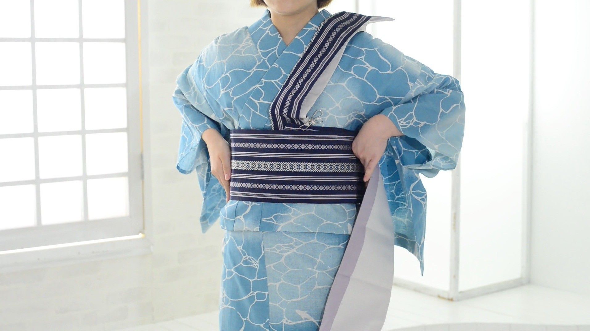 【動画で解説】涼やかで大人っぽい!浴衣の帯の結び方「文庫の片流し」