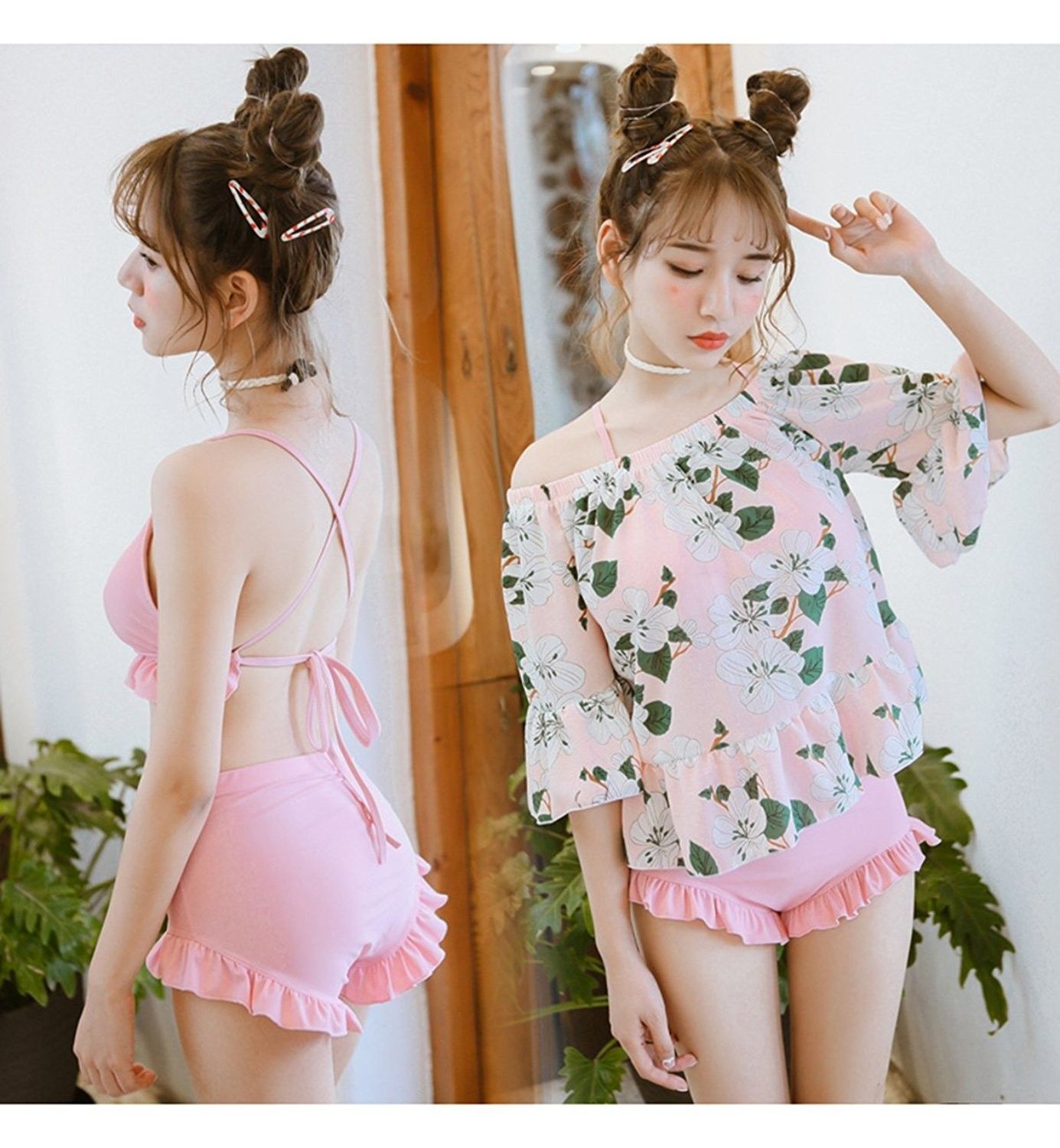 タンキニとビキニにトップスとショートパンツが付いた、Angellunaのお得な4点セット水着。シンプルな配色とエスニックな花柄のバランスも良く、シーンによって組み合わせを変えられるのも嬉しいポイントです。