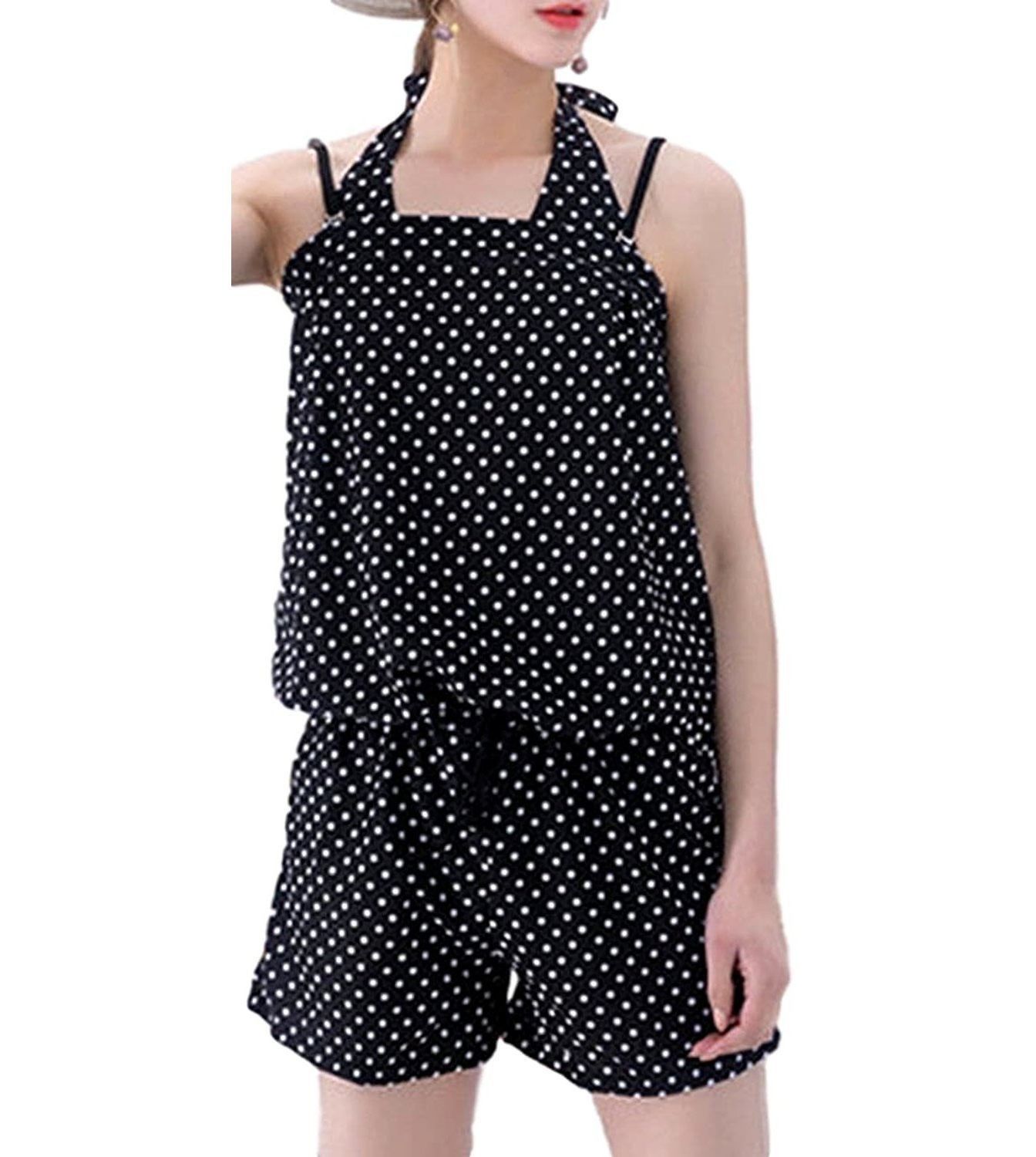 ドット柄が可愛いAguiluchoのタンキニスイムウェア3点セット。お腹周りの露出も少ないので、プールや海などのレジャー施設だけでなく、ジムや温泉などでも使いやすいデザインです。