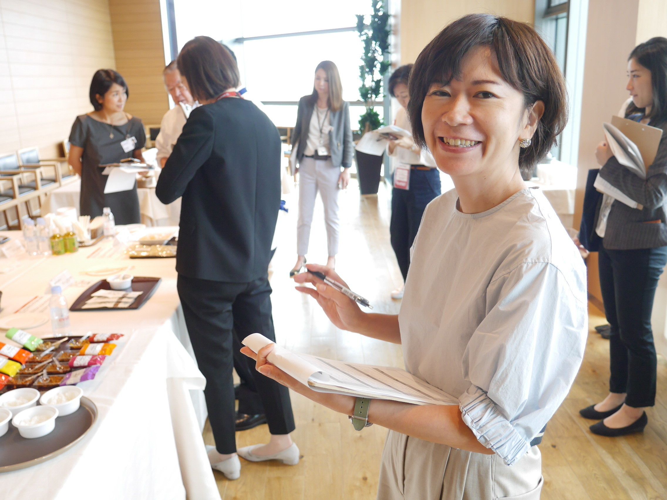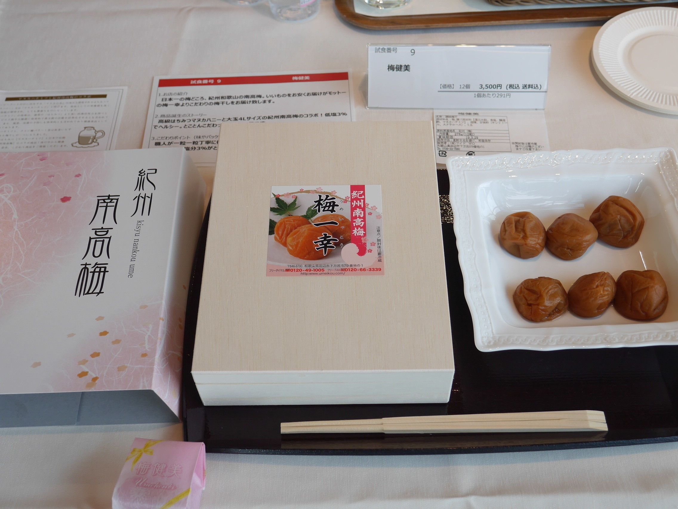 「丹波のわっぱおこわ」と並んで、名前があがっていたのが、一粒ずつ丁寧に個包装されたこだわりの梅干し「梅健美」。浜内さんもいち早く「おいしい!」の声をあげられていました。「マヌカハニーを使っているという着眼点がいいですね。後味のきれがよくて美味。このはちみつならではの甘味と塩分3%の組み合わせが食べやすく、若い人のニーズをよくとらえていると思います」と、さすがの着眼点。「木箱のパッケージもすてきで、1個300円弱ならコスパもよし」と太鼓判を押してくれました。