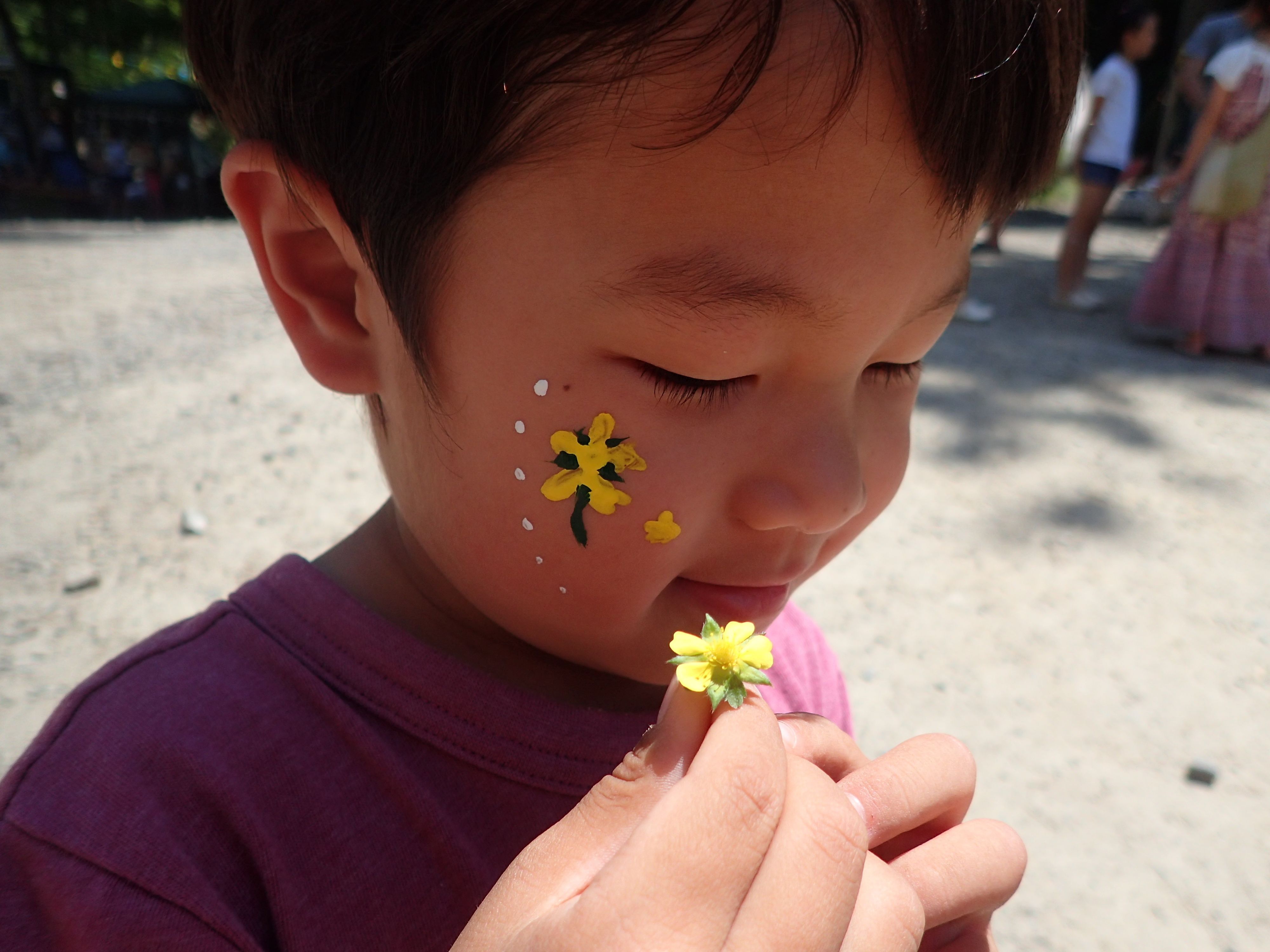 それまであまり絵を描く行為に興味を持たなかった息子なので、私自身もとても驚きました。頬に描かれたタンポポの絵が、きっと彼の心に大きな感動を残したのでしょう。