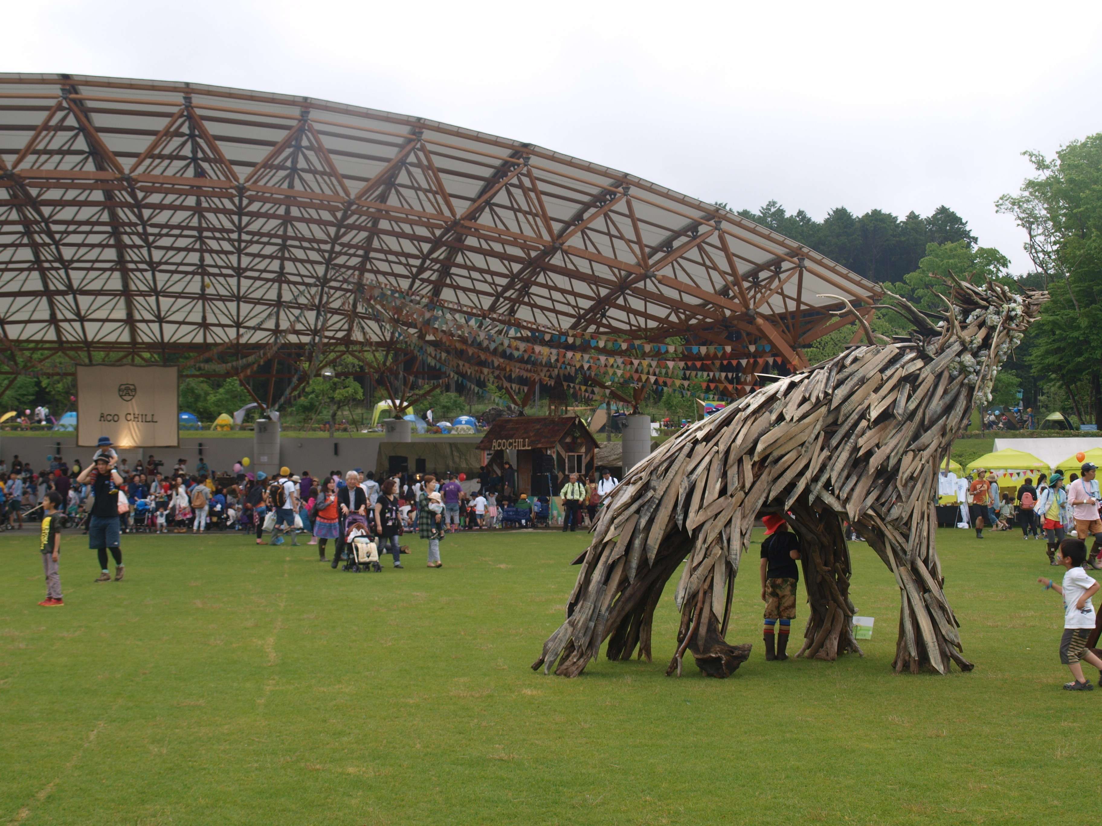 アウトドアナビゲーターの渡部郁子です。子どもといっしょに、いままで様々なフェスを楽しんできました。親子で初めてのフェス参加は、息子が生後3ヶ月の時のフジロック。それまで夫と一緒に何度も参加してきたフェスなのに、赤ちゃんがいることで、滞在中の体験も目線も行動も大きく変わったことを覚えています。