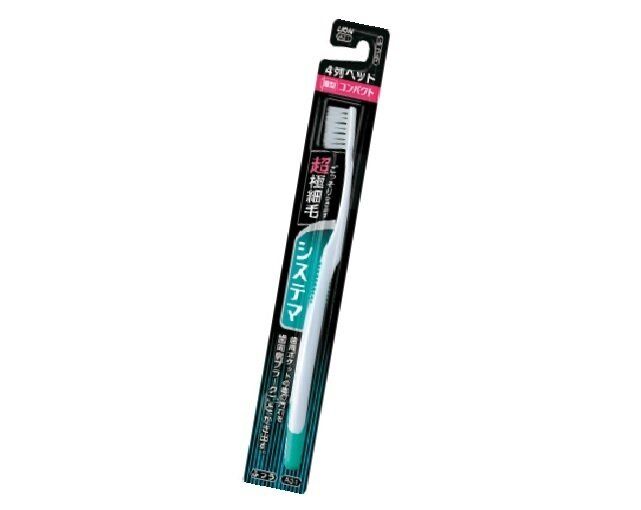 歯周病ケアのために開発された歯ブラシ。超極細の毛が、ふつうの歯ブラシでは残りがちな汚れをかき出す。「システマハブラシコンパクト 4列ふつう」 ¥260(編集部調べ)/ライオン