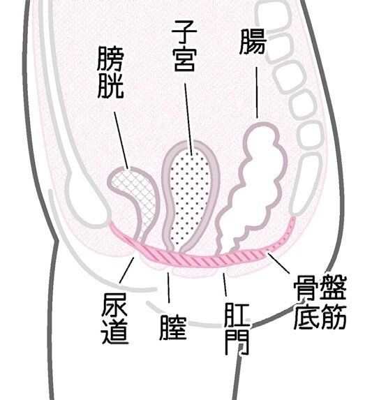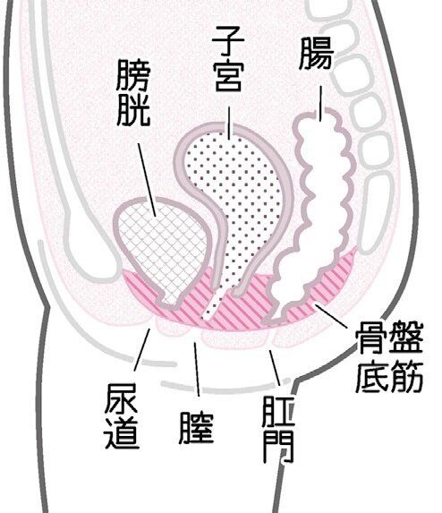骨盤底筋の弾力がだんだんゆるみ、だら~んとした状態に。臓器も下がってきて、骨盤がゆがむ人も。膣、尿道、肛門の開閉もうまくいかず、もれてしまう原因に……。