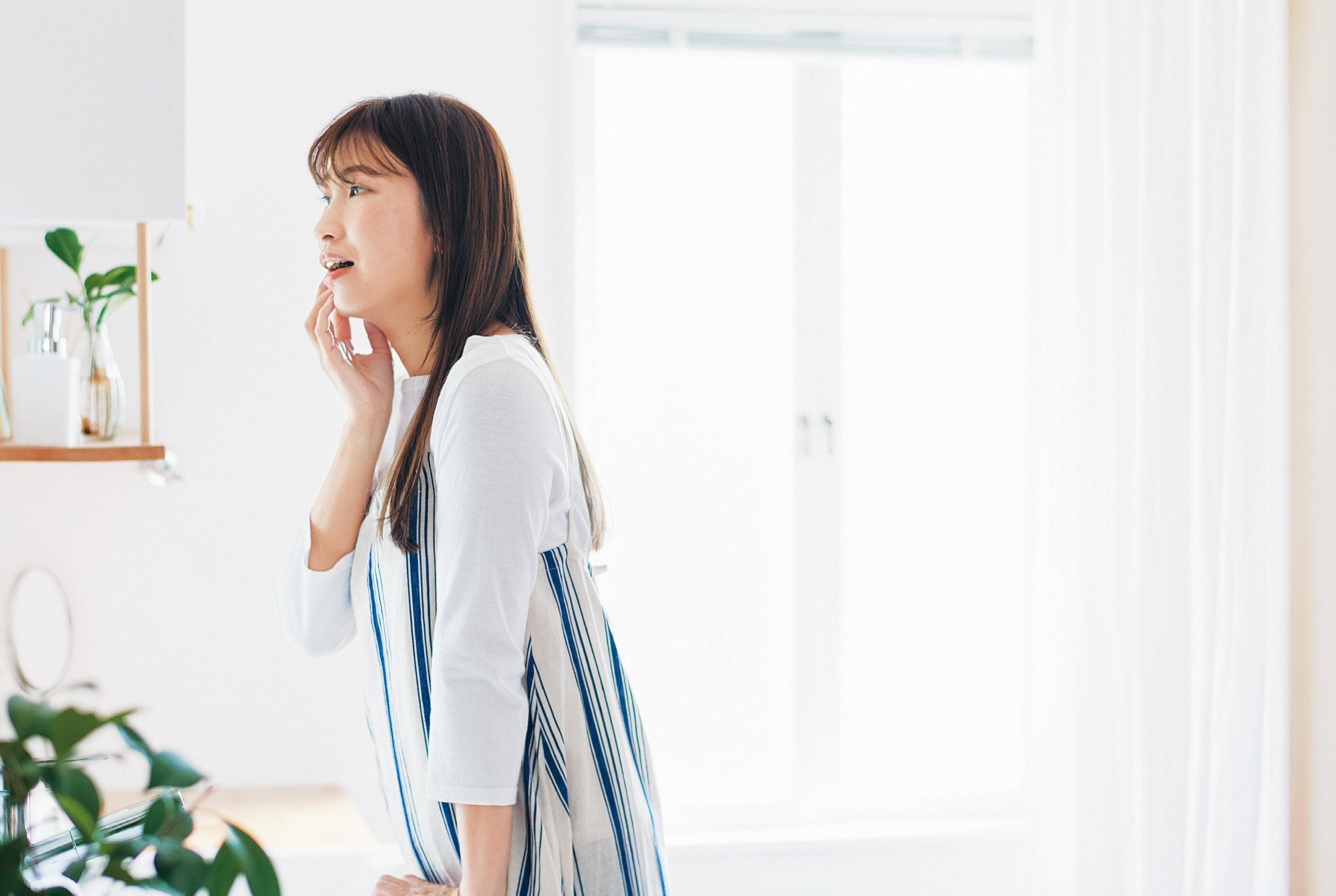 口の中の唾液の分泌をよくするには、上記のマッサージを行うほか、食事のときはよくかむことを心がけて。さらに鼻で呼吸するように意識することで、口腔内の乾燥を防ぐことができます。また、乾燥症状に効く漢方薬、「麦門冬湯」(ばくもんどうとう)や「補中益気湯」(ほちゅうえっきとう)の服用で改善する場合もあります。