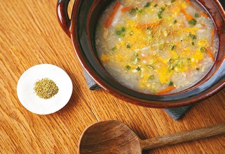 山椒も冷え症の漢方薬に用いられ、温め効果が高いスパイス。雑炊などに粉山椒をふりかけるだけで胃が温まります。雑炊のようなとろみのある料理は、温かさが長く続くのでおすすめ。