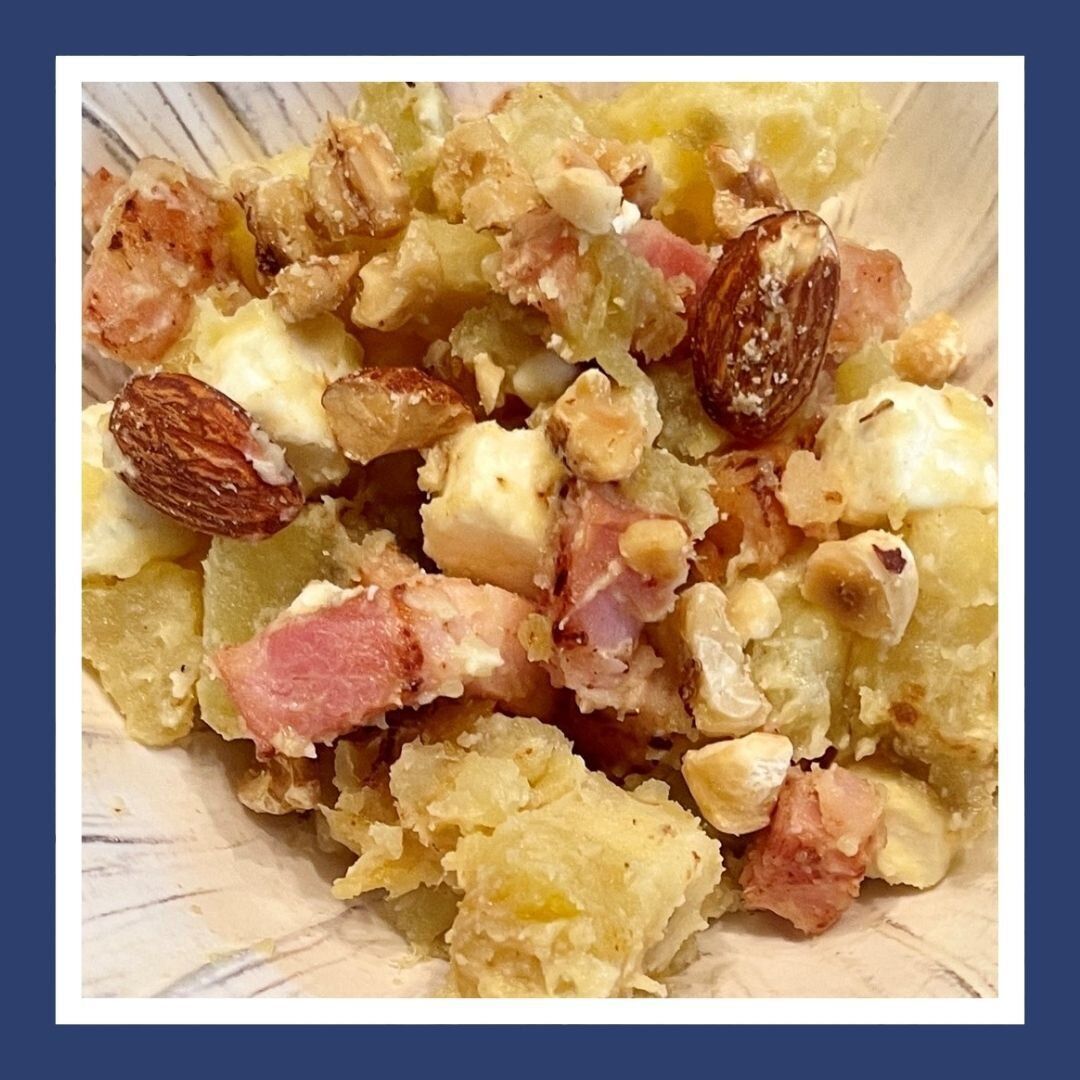 「お気に入りのレシピは、スーパーで売っている焼き芋にクリームチーズ、マヨネーズ、ベーコンを加えて塩コショウを入れ、仕上げに砕いたナッツをのせたもの。お酒とも相性ばっちりでおすすめですよ!」(サンキュ!アンバサダー 山内藍さん)