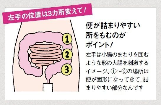 「腸はぜんどう運動をして、便を体外へと送り出していますが、働きが弱くなると、その動きが悪くなり、どうしても便秘になりやすいんです。そんなときに有効なのが”腸もみ”です。