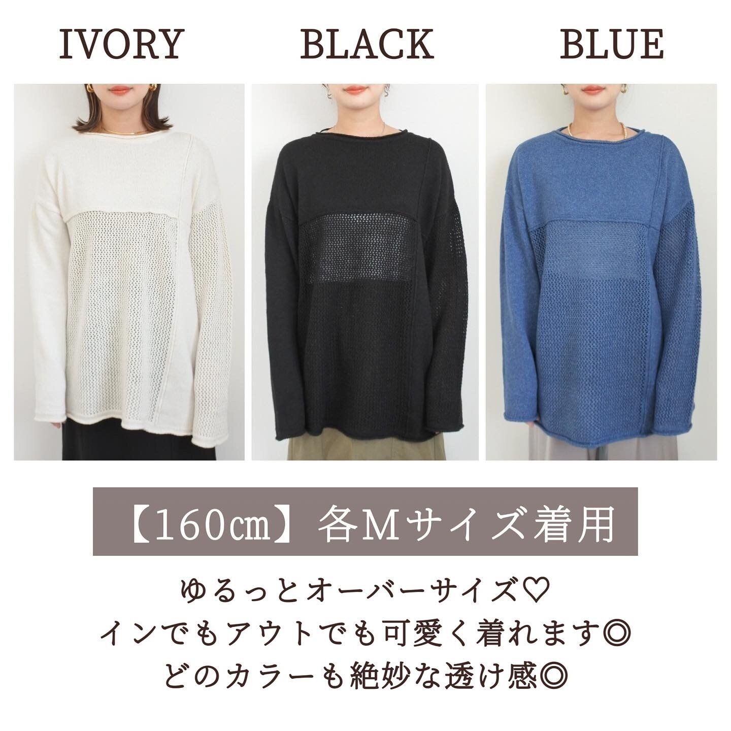 透かし編みニットはよく見かけますがこちらは部分的に透け感を楽しめる切り替えデザインなんです。