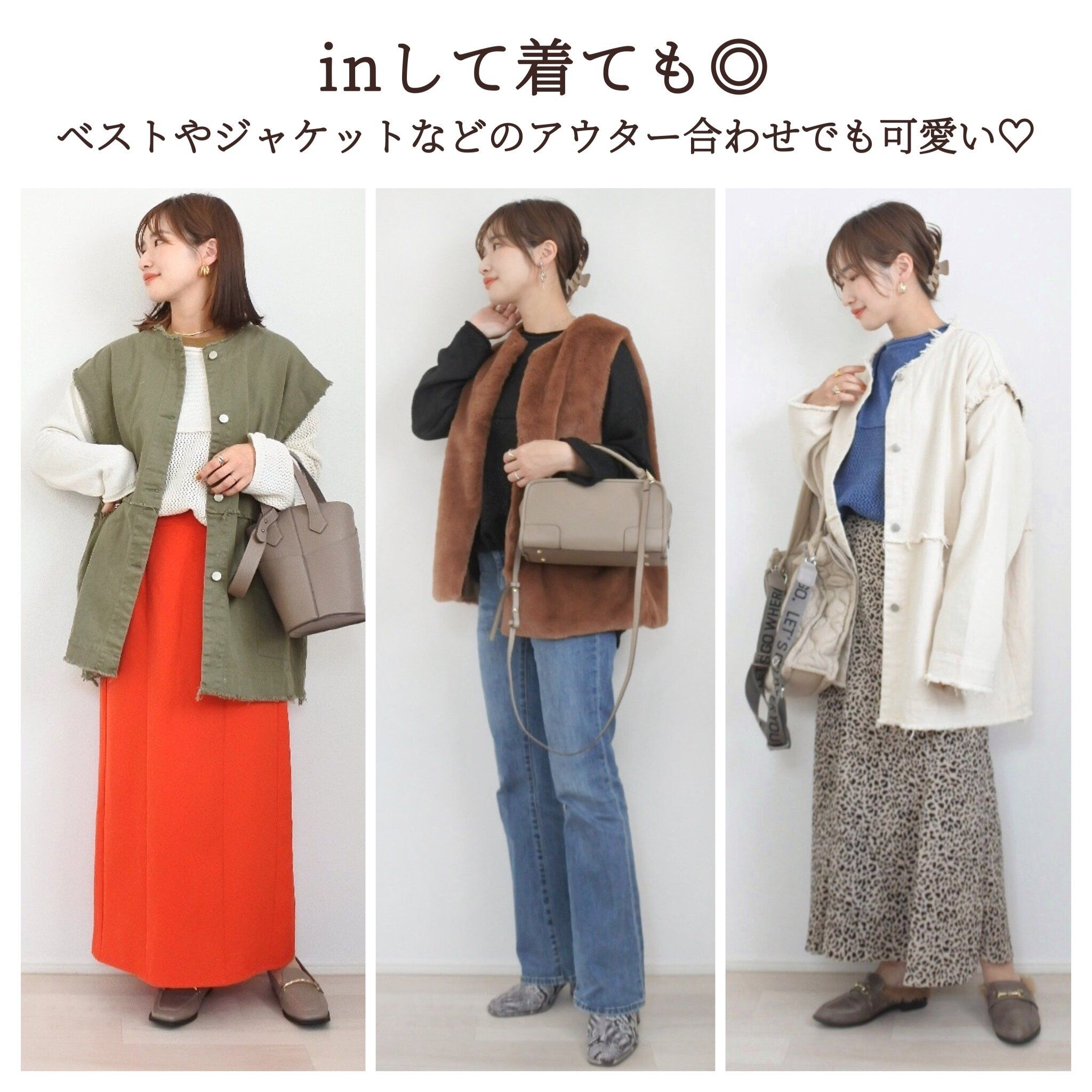 今季トレンドのベストやデニムジャケットと合わせるスタイリングにもぴったり◎