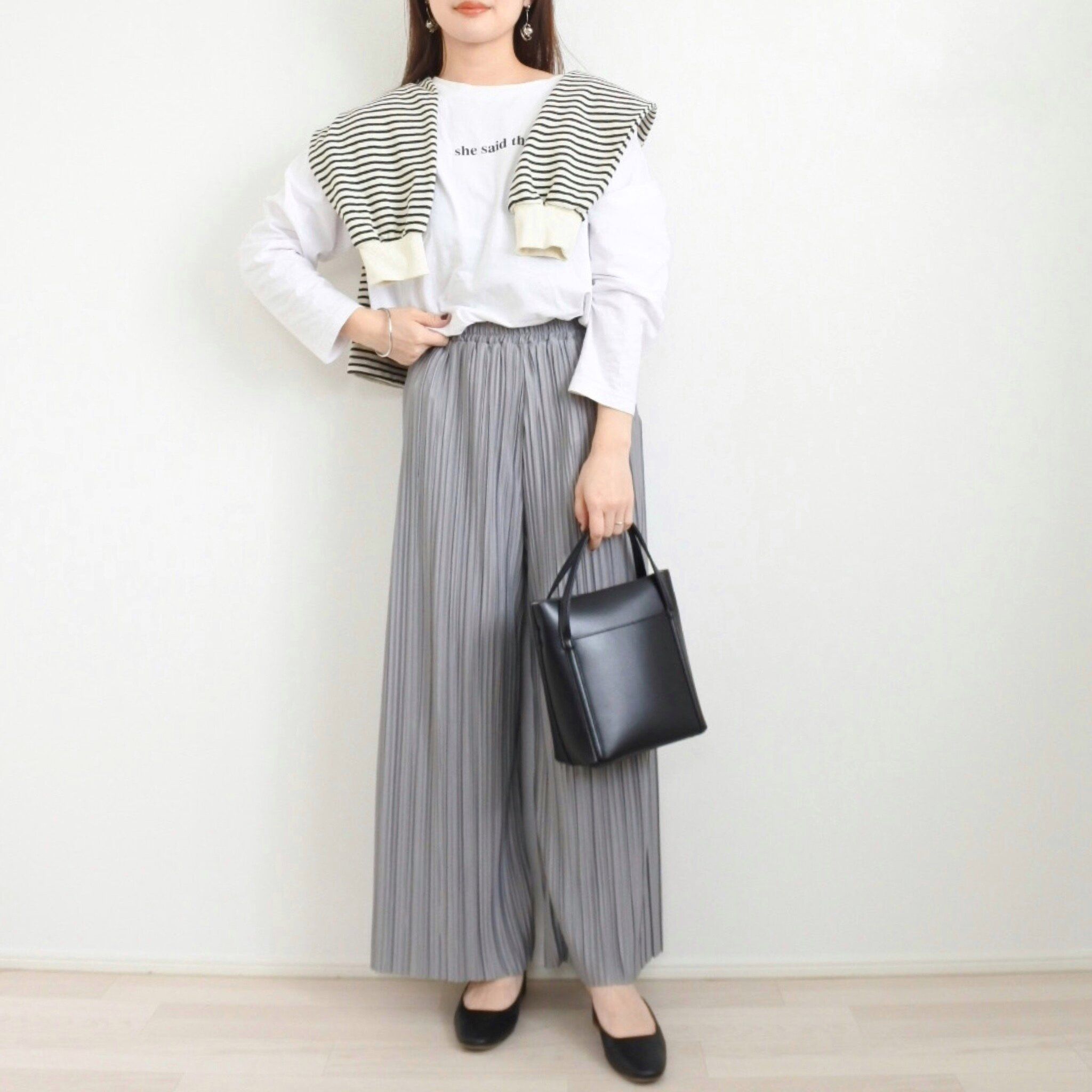 最新のプリーツワイドパンツ4色の着こなし方をご紹介していきます。