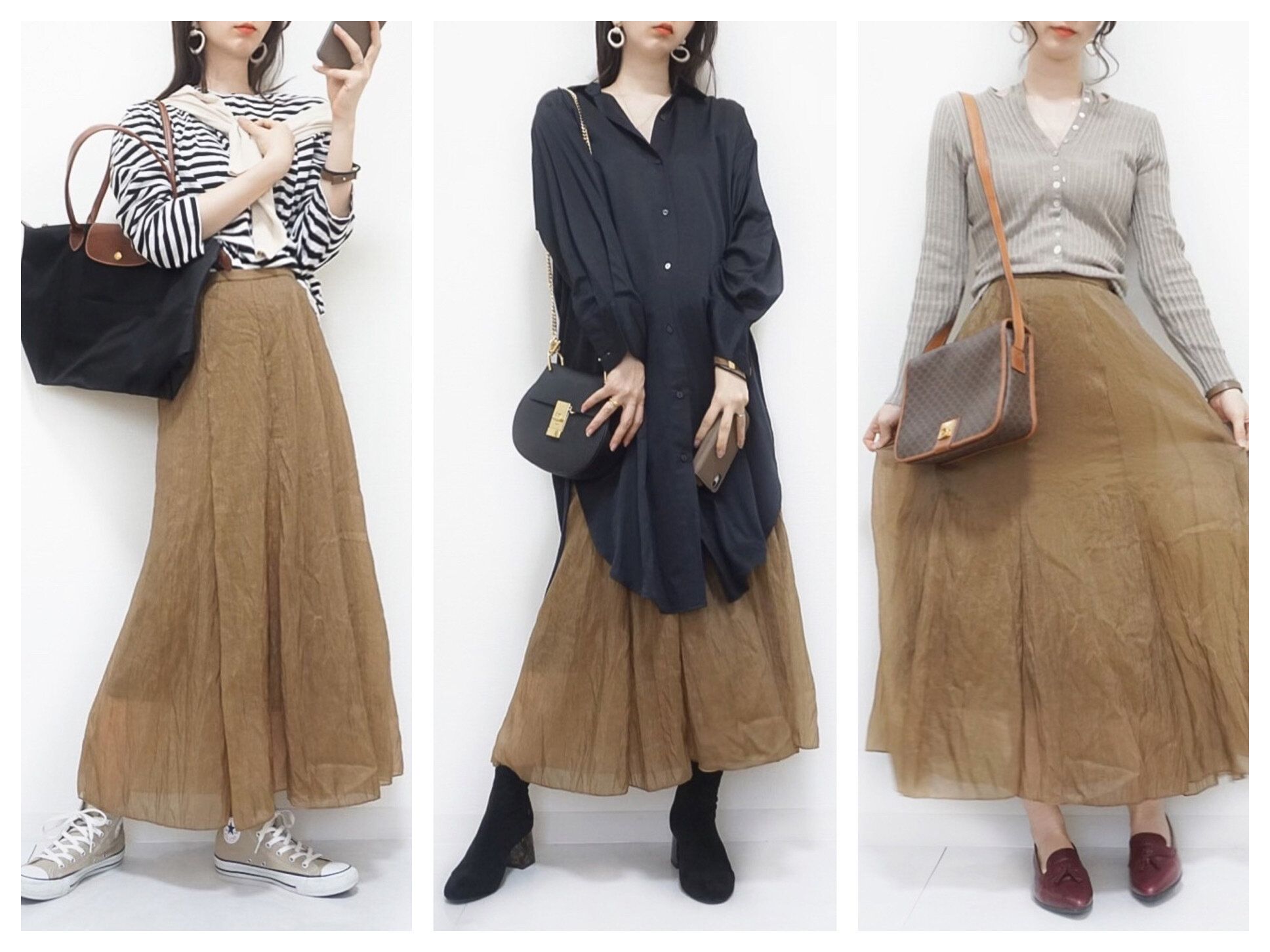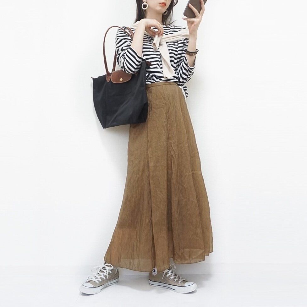 異素材スカートがスパイスになる秋コーデ