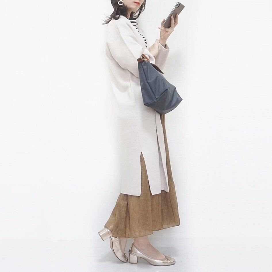 この丈の長さ、ロングカーディガンやコートからちょうどよく出る感じが可愛いです。