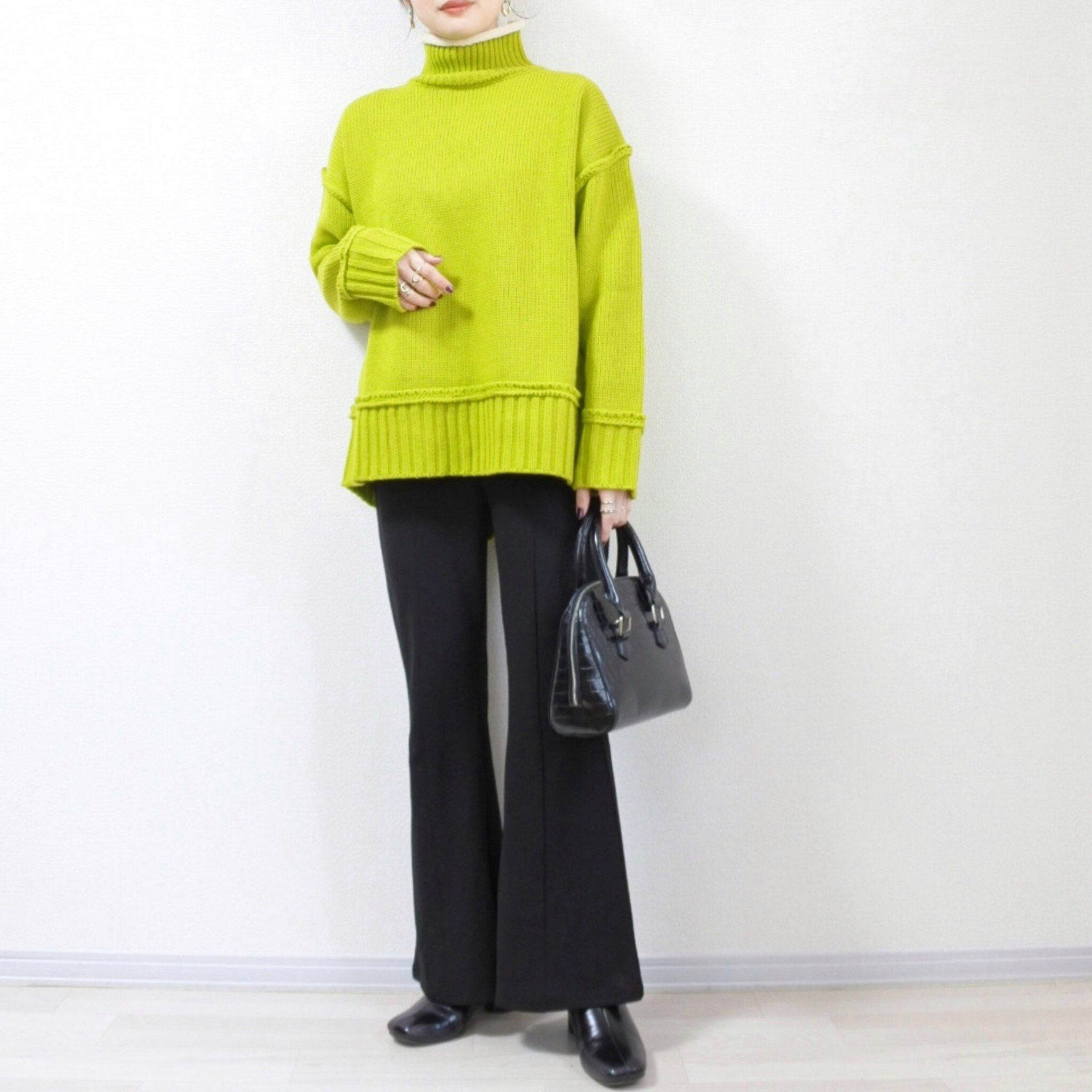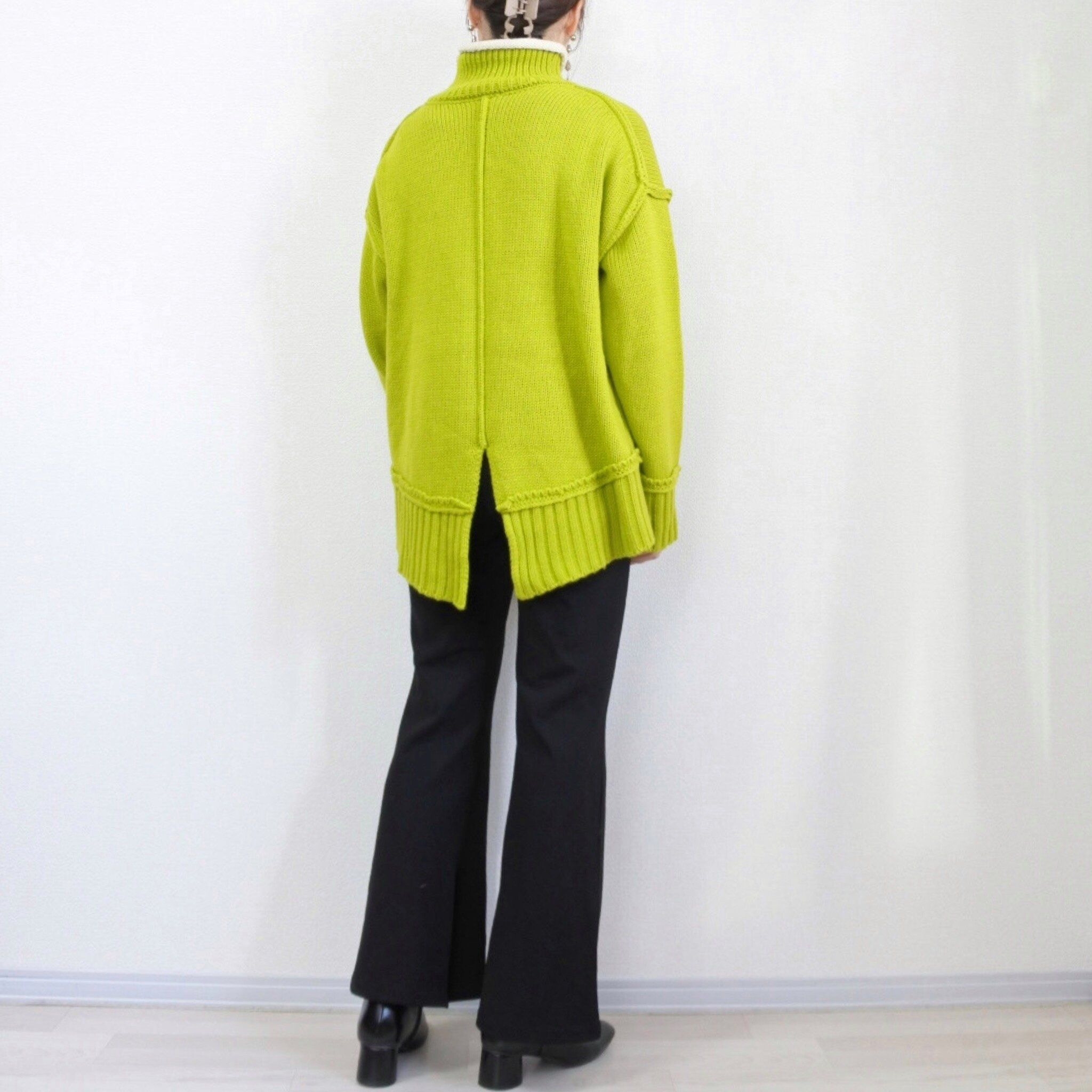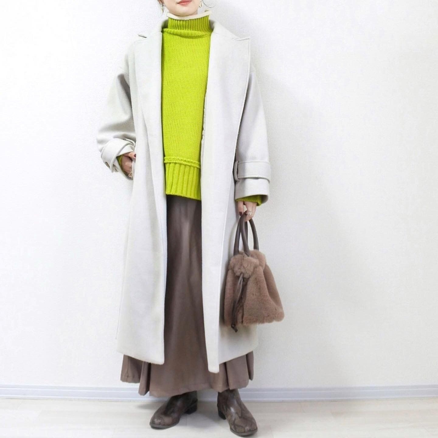 今回は配色デザインが可愛いライムグリーンのニットの着こなし方をご紹介していきます。