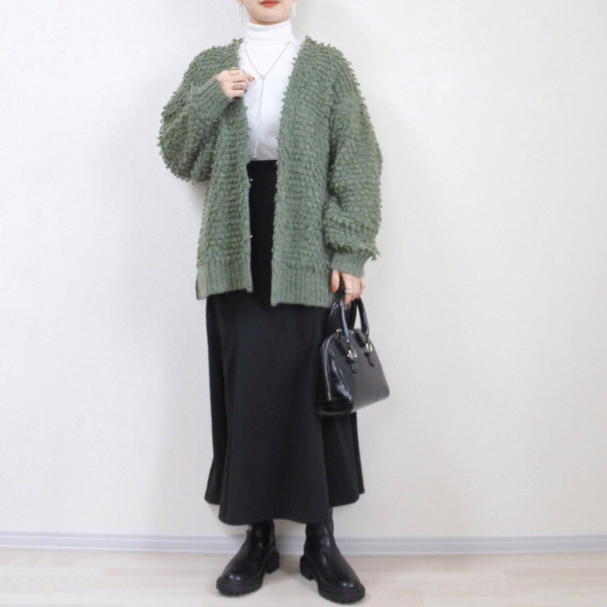 Tシャツのような感覚で着れちゃうタートルネックアイテムなのでカーディガンなどを上から羽織っても着膨れすることなくすっきりと着用できます。