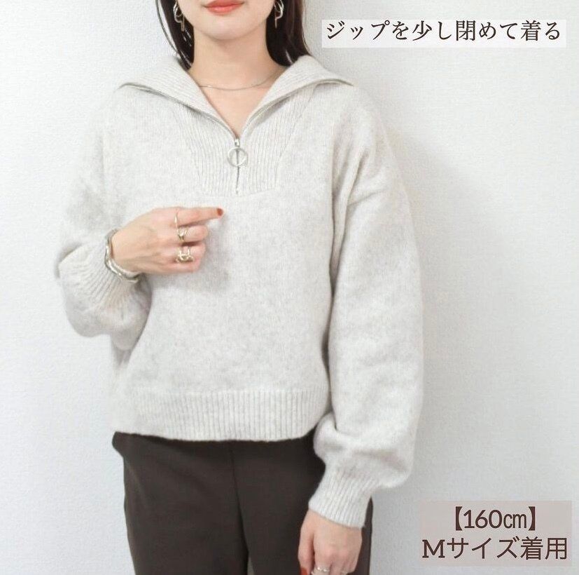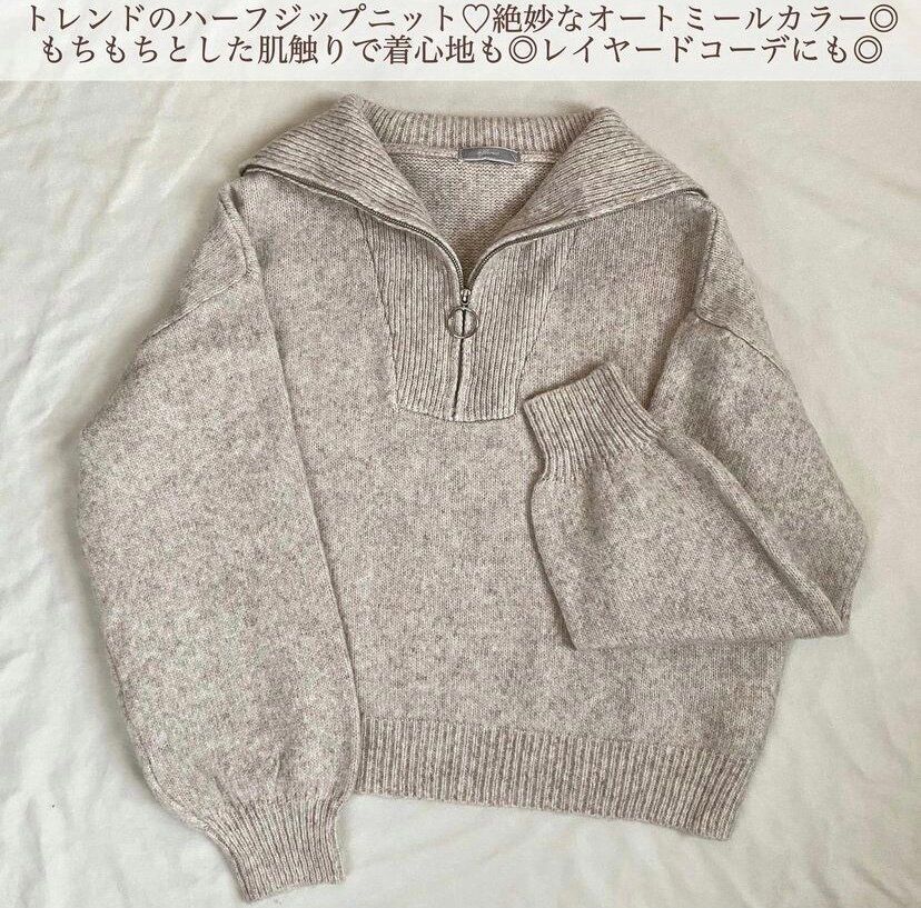 今季トレンドのハーフジップデザインのニット。