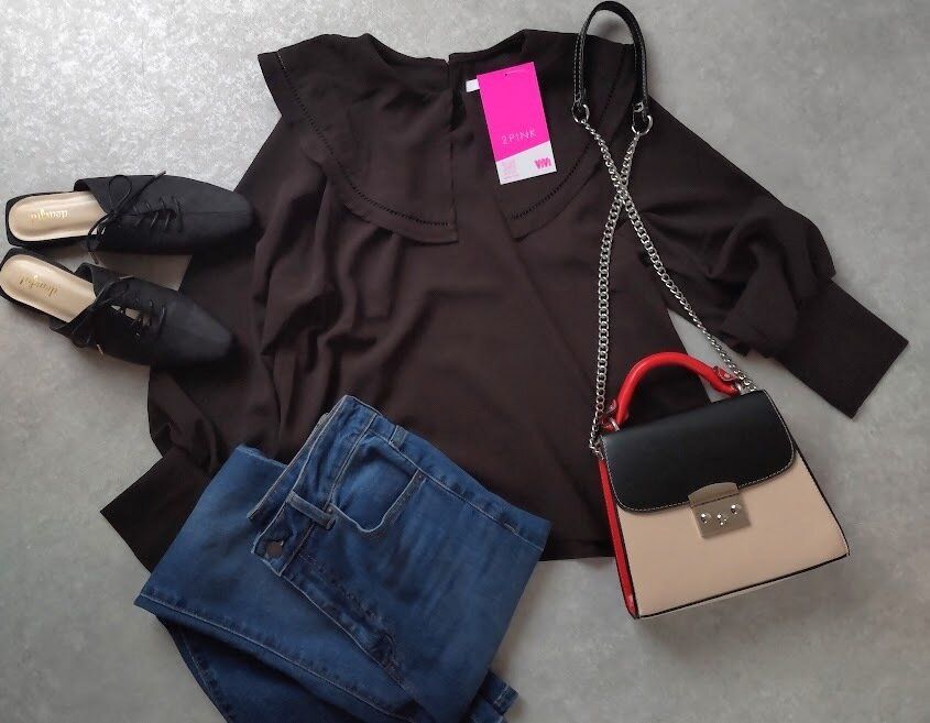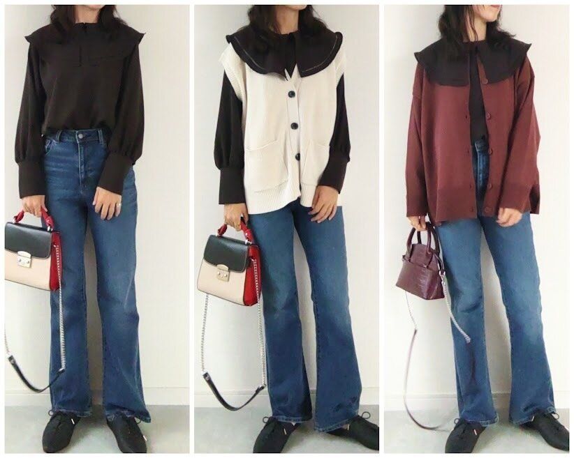 大きな襟ですがフリルではないので大人女子にも取り入れやすいと思います
