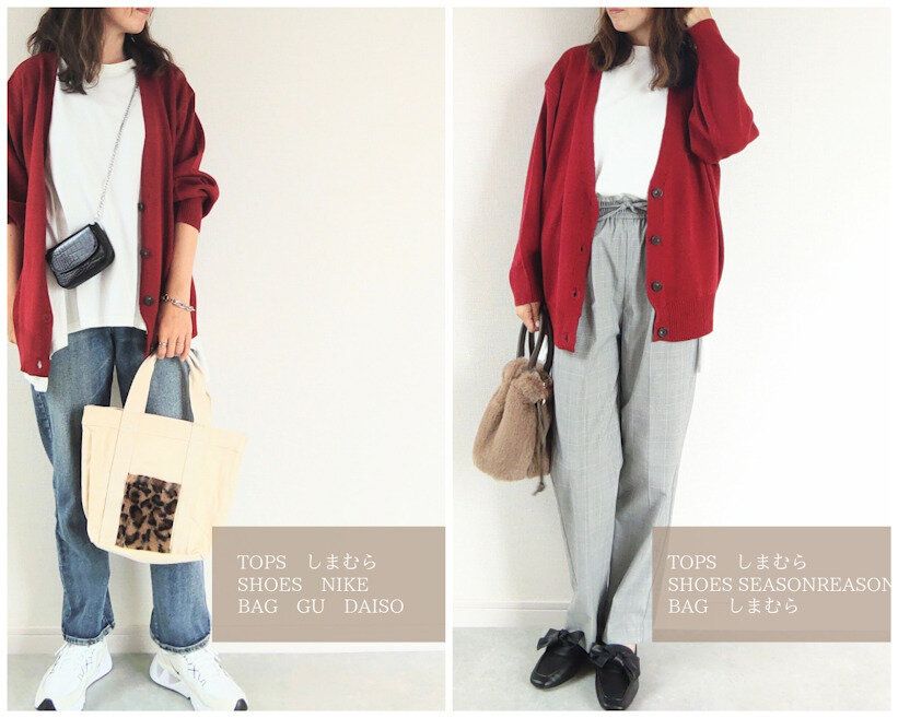 今回はしまむらで販売されている差し色カラーのカーディガンをコーディネートとともに紹介したいと思います!