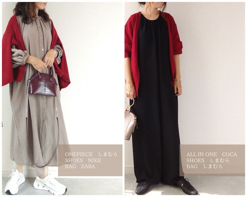 秋色のシャツワンピに合わせればパッと明るくなるし