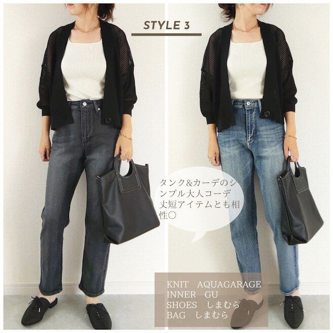 短め丈のカーディガンと合わせれば脚長効果