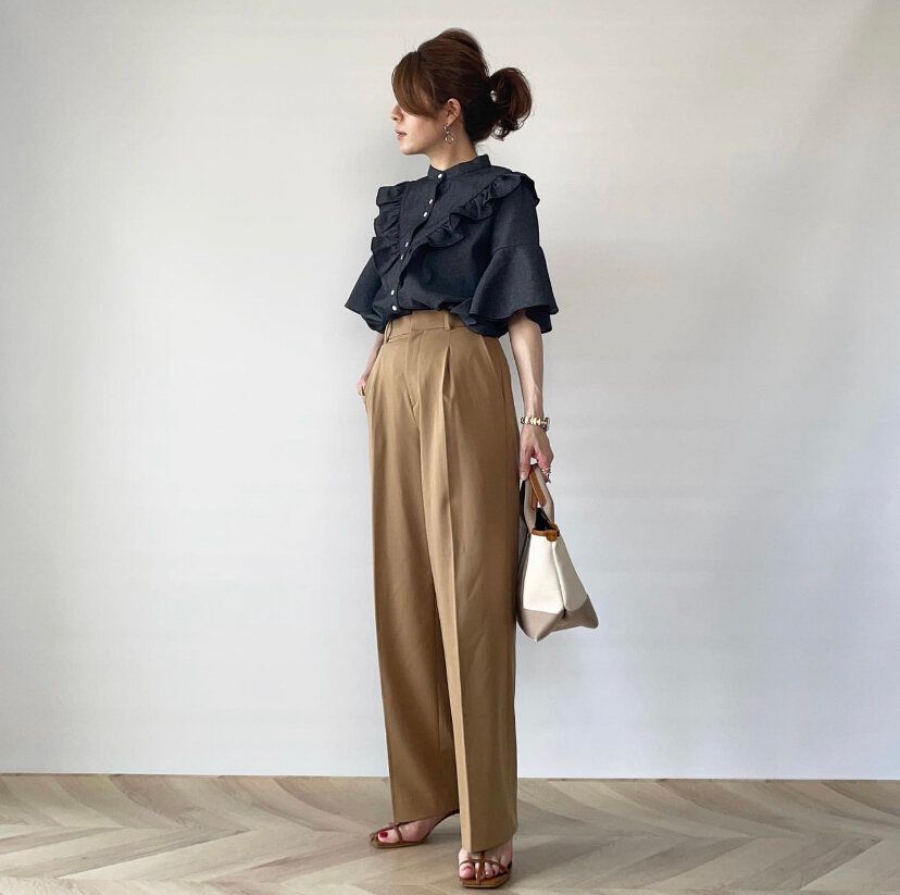 どのカラーを買おうか悩んだらベージュがおすすめ。ベージュは合わせるアイテムによってカジュアルにもフォーマルにも使えますし、着用する季節を選ばないカメレオンパンツ!ガーリーなトップスも大人っぽく表現してくれます。