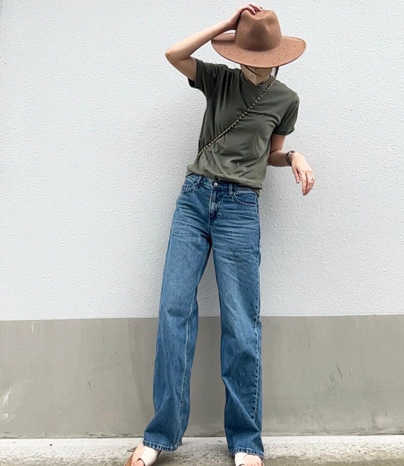 シンプルなTシャツを合わせてもおしゃれなカジュアルスタイルが完成するローライズバギージーンズ。トップスはオーバーサイズではなくジャストサイズに近いアイテムを選ぶことでよりスタイルアップした印象を与えてくれます。