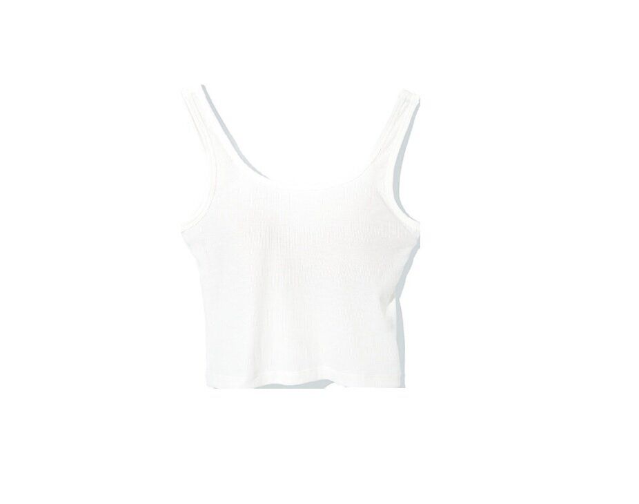 カップつきのインナーは、ウエストより短い丈が、重ね着してもすっきり見えて意外と便利。「ブラフィールクロップドバックオープンタンクトップ」¥990/GU