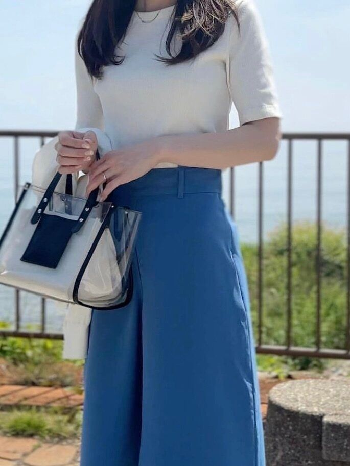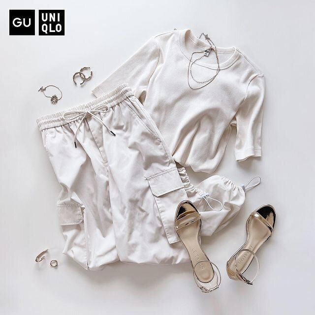 見た目はコットンながらも、サラッとした着心地が魅力のコットンのエアリズムは、うだるような暑い日が続くと、やっぱり手に取りたくなりますよね。たくさんあるエアリズムの中で、レディースの「エアリズムコットンT(半袖)/1,500円」をセレクトした理由は、メンズ(男女兼用)の「エアリズムコットンオーバーサイズT」よりも白くて、やや短めの着丈になっている点。夏の王道ともいえるシンプルな着こなしをバランスよく仕上げてくれます。