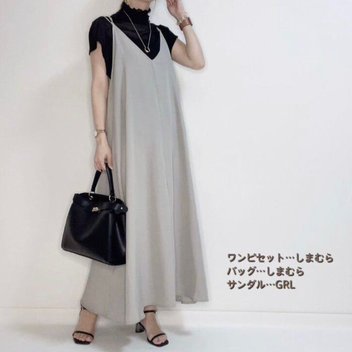 しまむらのWストラップのキャミワンピースは、シアートップスとセットになったお買い得なアイテム(商品名:シアーセットインナー+Wストラップ/2,189円 品番:523-3189)。ワンピースはWストラップとバックについている華奢なリボンがポイント。シアートップスは透け感がほどよくて、涼し気に見えます。それぞれ単品でも着回しできるので、手持ち服と合わせてみるのがおすすめ。持っているだけで夏のワードローブの主軸になりそうなアイテムですね。