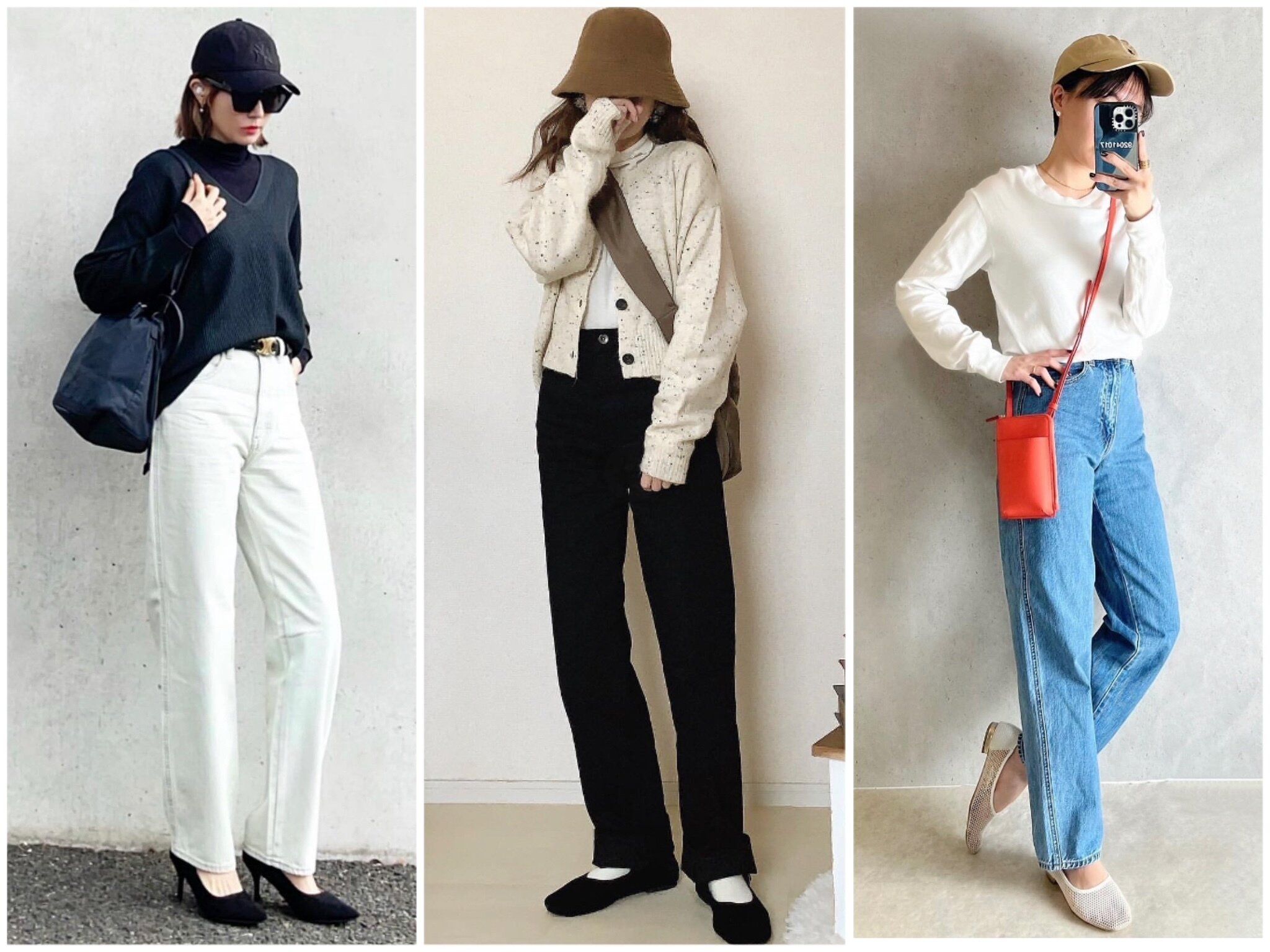ファッションインスタグラマーのジーンズスタイルを参考にしてみると、ちょっとルーズなシルエットのジーンズを履くときはトップスをインしたり丈の少し短いものを取り入れたりメリハリをつけるのがおしゃれに見えるポイントだということが分かりました。