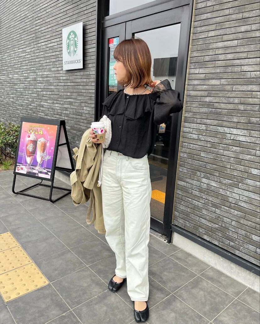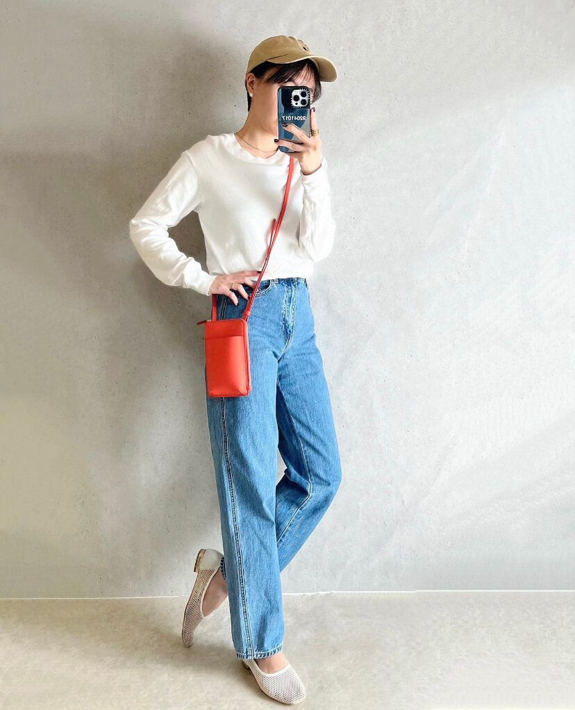 また、カジュアルなスタイルにパンプスを合わせてみたり、トップスにトレンドのデザインを取り入れることでワンランク上のジーンズスタイルが完成しています。