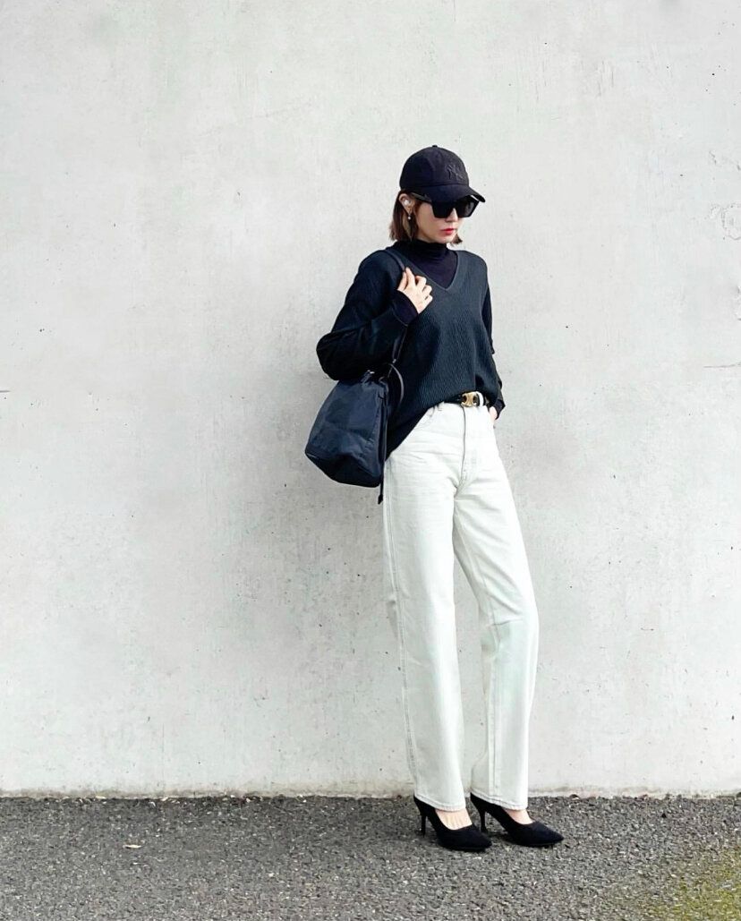 カーブジーンズのブラックはより着やせ効果が期待できるアイテム。ブラックはジーンズでもカジュアルになりすぎないのも魅力の一つです。ブルーのジーンズはお気に入りのものを持っている……という人はブラックをクローゼットにプラスしちゃいましょう!いつものコーディネートでも違った印象を与えてくれます。