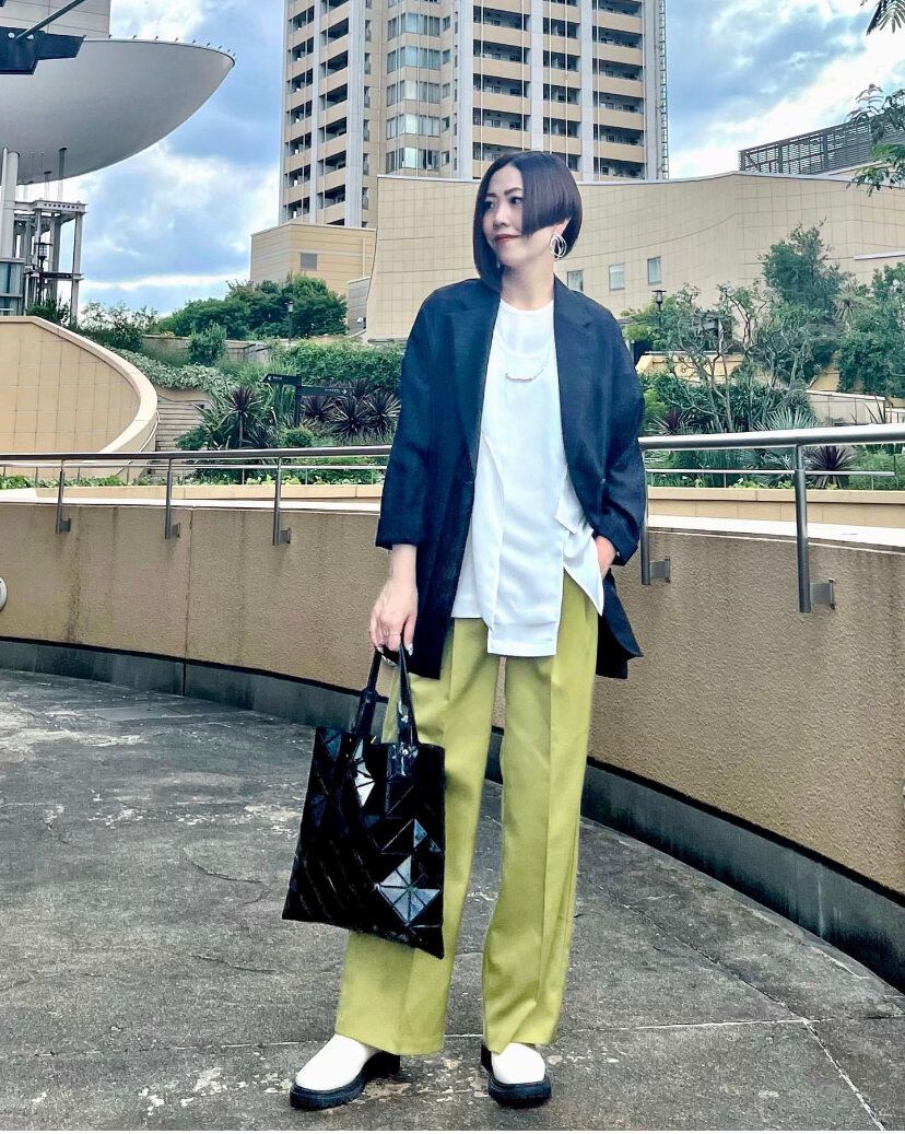 今回は、Instagramで見つけたグリーンのローウエストバギーパンツを使ったお手本コーディネートをご紹介します。