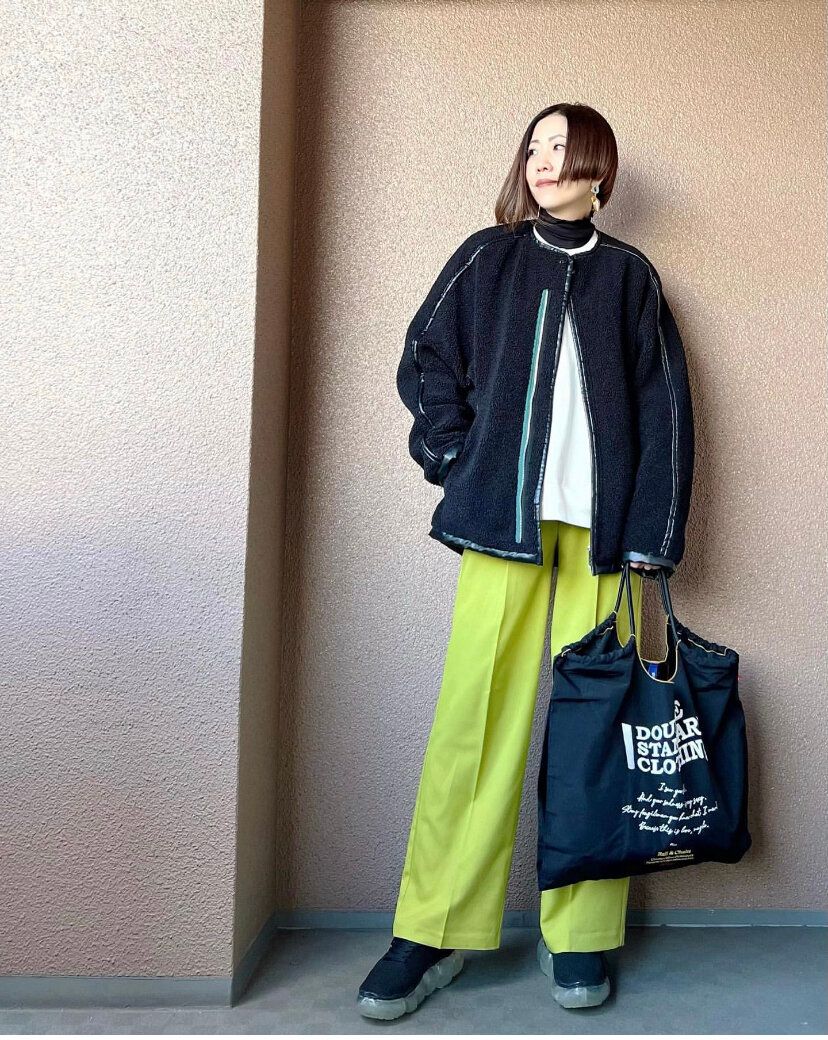 アウターなどが冬のアイテムでもグリーンを投入することで華やかさをプラスし季節を先取りできます。やや黄色みがかった明るいグリーンは暗いカラーと相性が抜群ですし、手持ちのアイテムを使ったコーディネートの雰囲気をがらりと変えてくれるので1枚持っておくと重宝する事間違いなしです。冬から春にかけて気温が安定しない今の時季だからこそおすすめ!