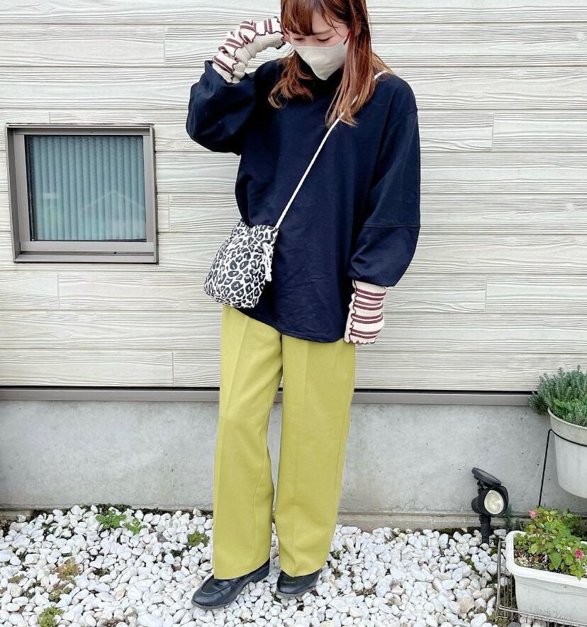 ワイドパンツなので、トップスをジャストサイズかややコンパクトなサイズをチョイスする事でメリハリが出てスタイルアップ効果も期待できます。