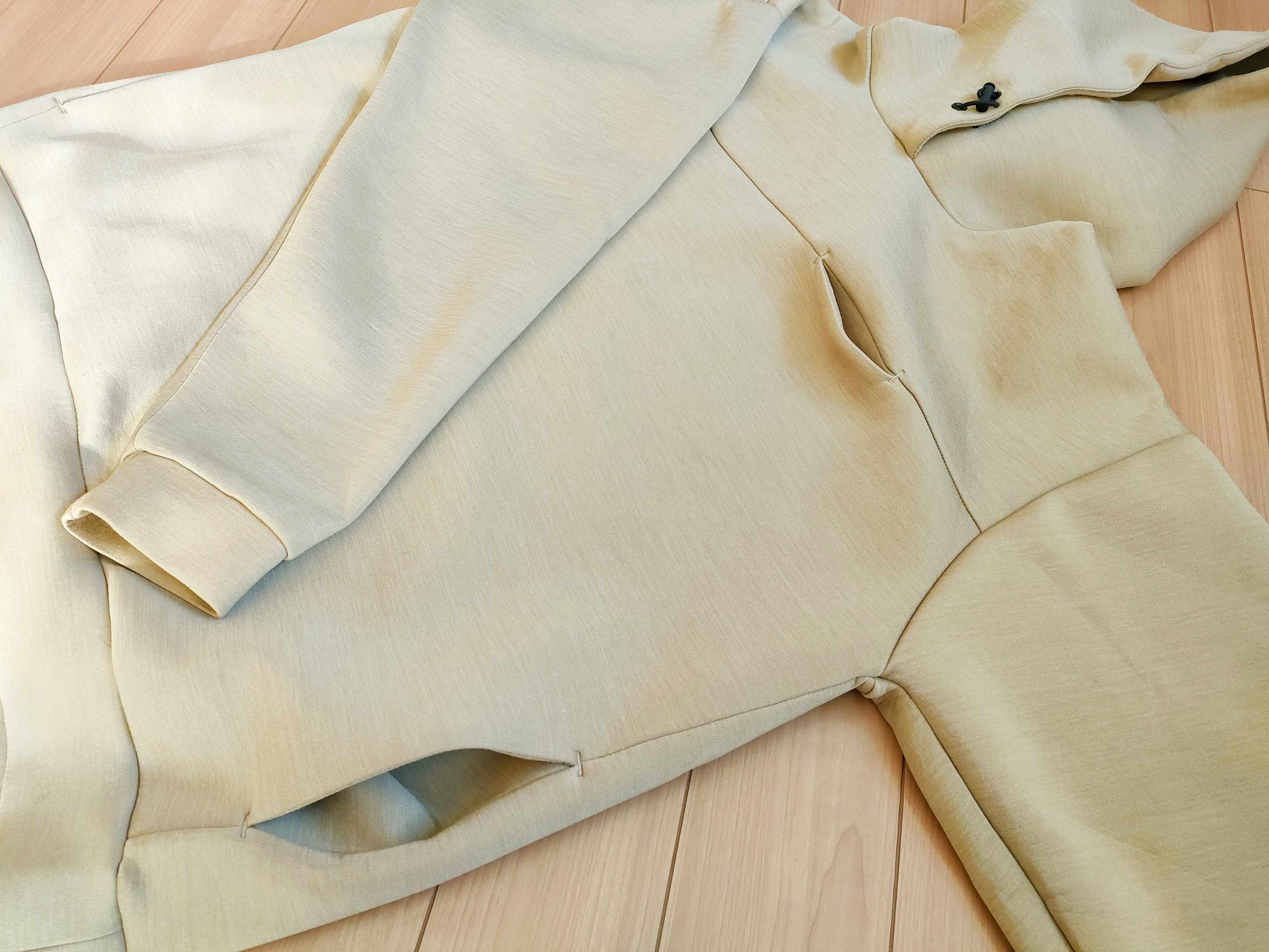 こちらは発売当初から人気があり、不思議な触り心地に魅了される人が続出したアイテムです。ポリエステル90%とポリウレタン10%の比率で、なめらかな触り心地のフードつきパーカー。カラーは5色展開しています。程よいオーバーサイズで男女ともに人気のあるパーカーです。
