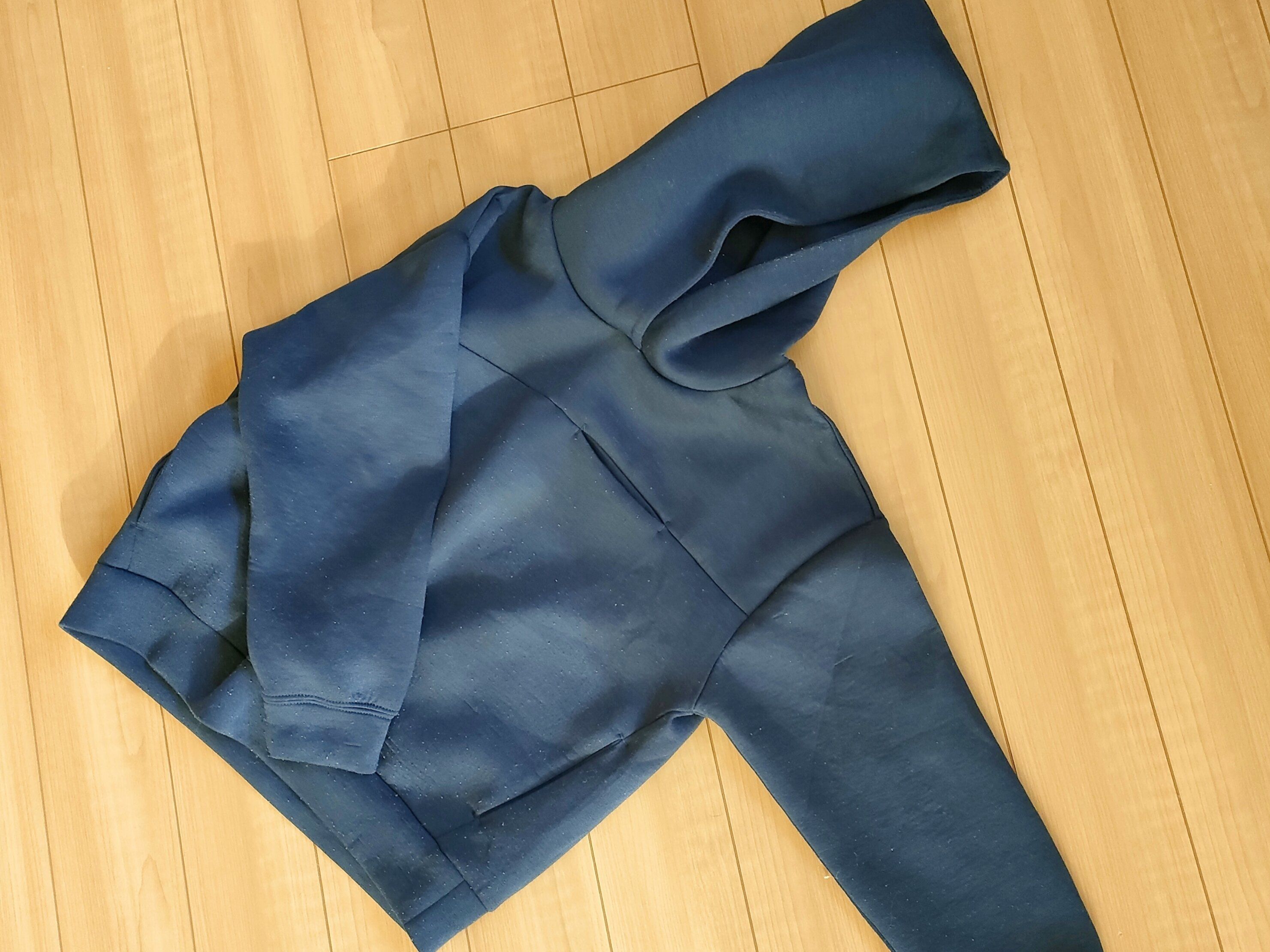 今回紹介するアイテムは、「ダブルフェイスビッグシルエットフーディ」1,500円です。