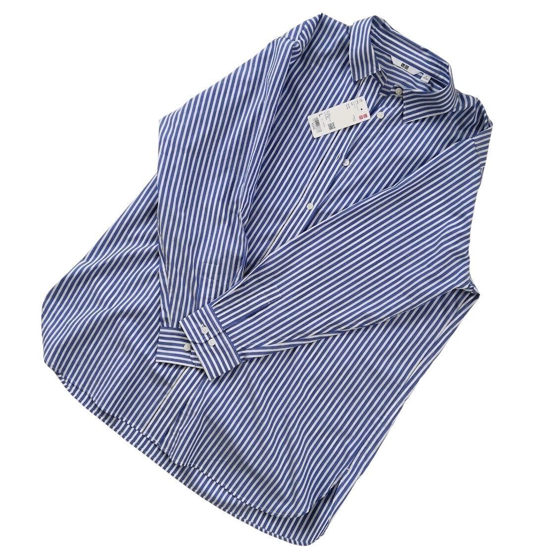 ユニクロの「コットンストライプロングシャツ(長袖)」(2024年9月現在、販売終了)を使ってストライプシャツ(長袖)のコーデ実例をご紹介。