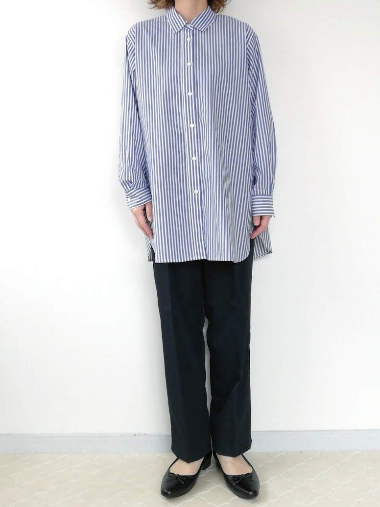ストライプシャツには、ピッタリしたシルエットのものからゆったりしたもの、ロングタイプや短いものまでバリエーションがたくさん。また、ストライプの柄も、太いタイプから細いピンストライプまで様々です。自分の体形や顔の雰囲気に合うストライプが見つけやすいのもメリットですよ。