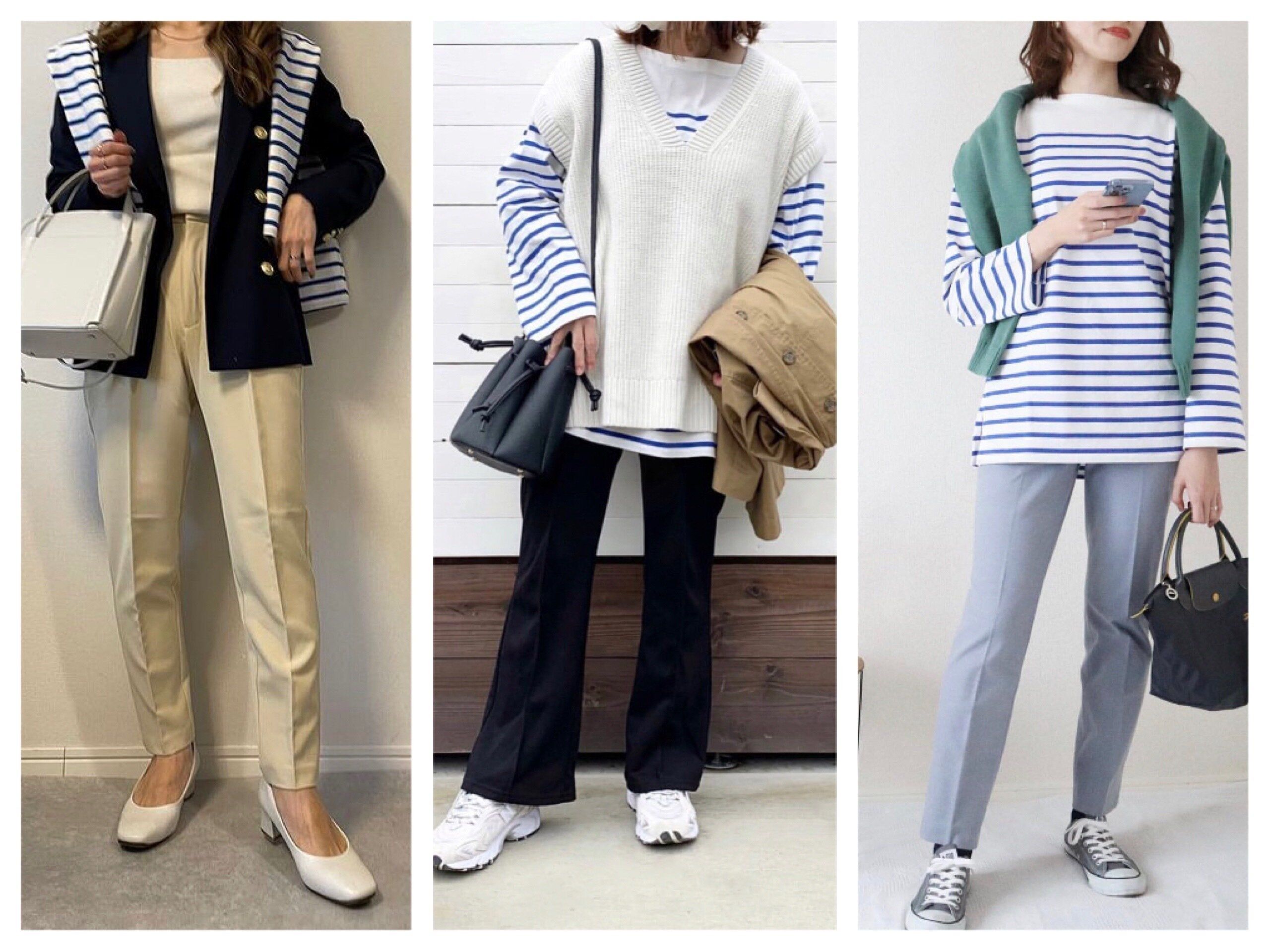 着回しのしやすいブラックやブルーのボーダー柄は大人気!人気なだけあって人とかぶることもしばしば。